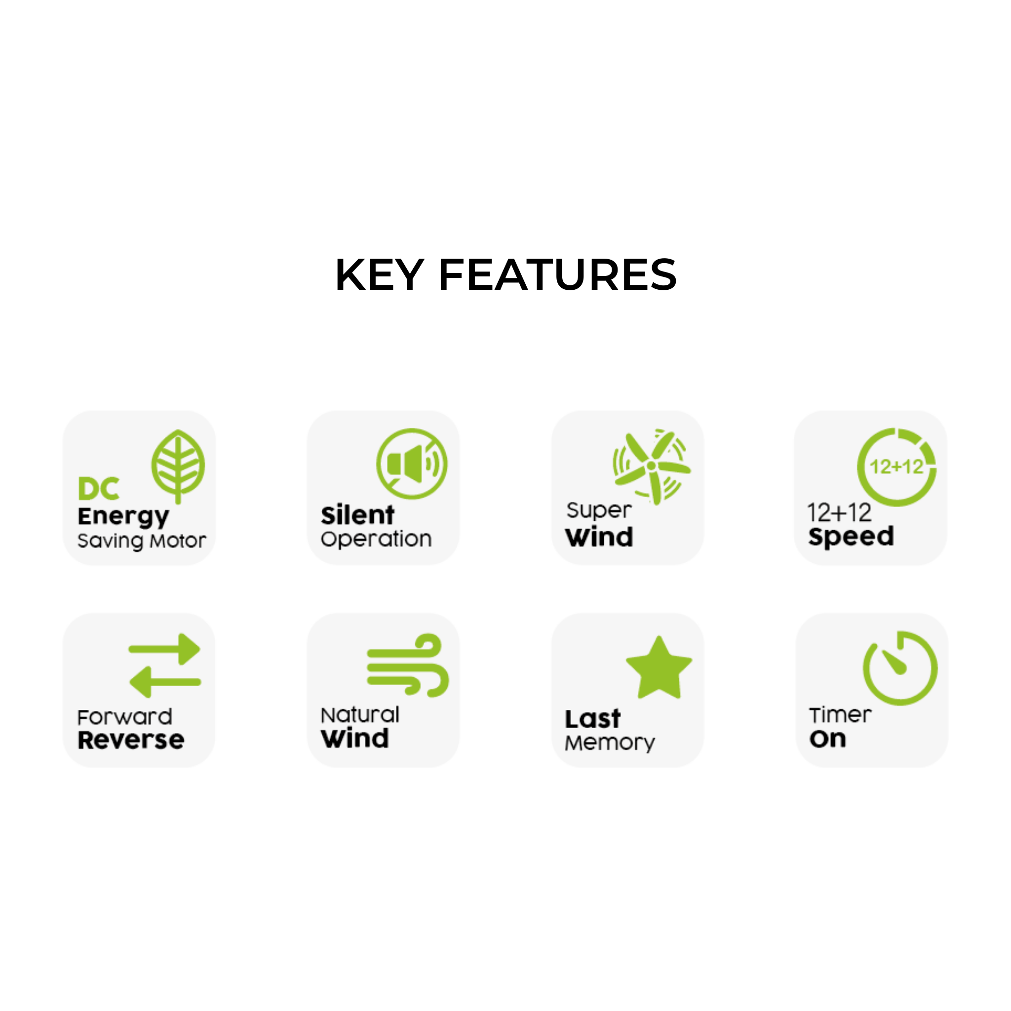 Model: MILI-3B/33 Blade Span: 33" Number of Blades: 3 Blade Material: ABS Motor Type: DC Motor Lighting: LED (3 Colour: Warm, Daylight, White) Speed Settings: 12 Speed (Forward/Reverse) Control: RF Remote Control Available Colours: MAPLE/MATTWHITE Warranty: 10 Years Warranty on Motor 2 Years Warranty on Internal Parts 1 Year Warranty on On-Site Service