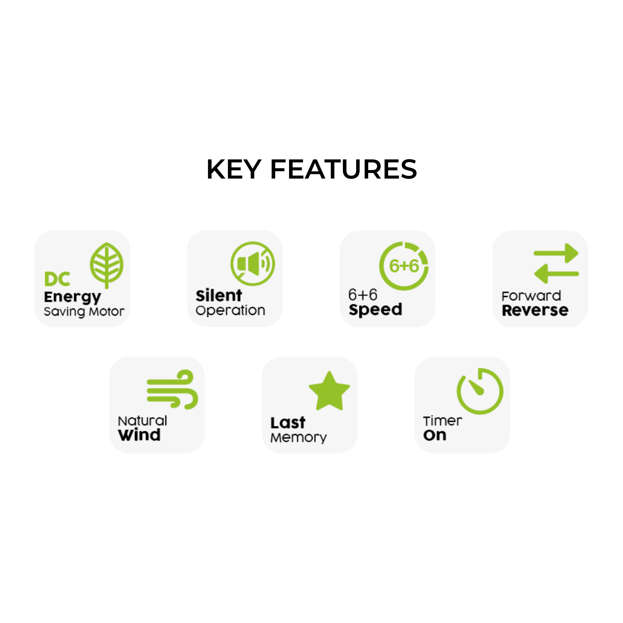 Model: LUNA-5B Series Blade Span: 56" Number of Blades: 5 Blade Material: ABS Motor Type: DC Motor Speed Settings: 12 Speed (Forward/Reverse) Control: RF Remote Control Available Colours: MATT BLACK, MATT WHITE Warranty: 10 Years Warranty on Motor 2 Years Warranty on Internal Parts 1 Year Warranty on On-Site Service