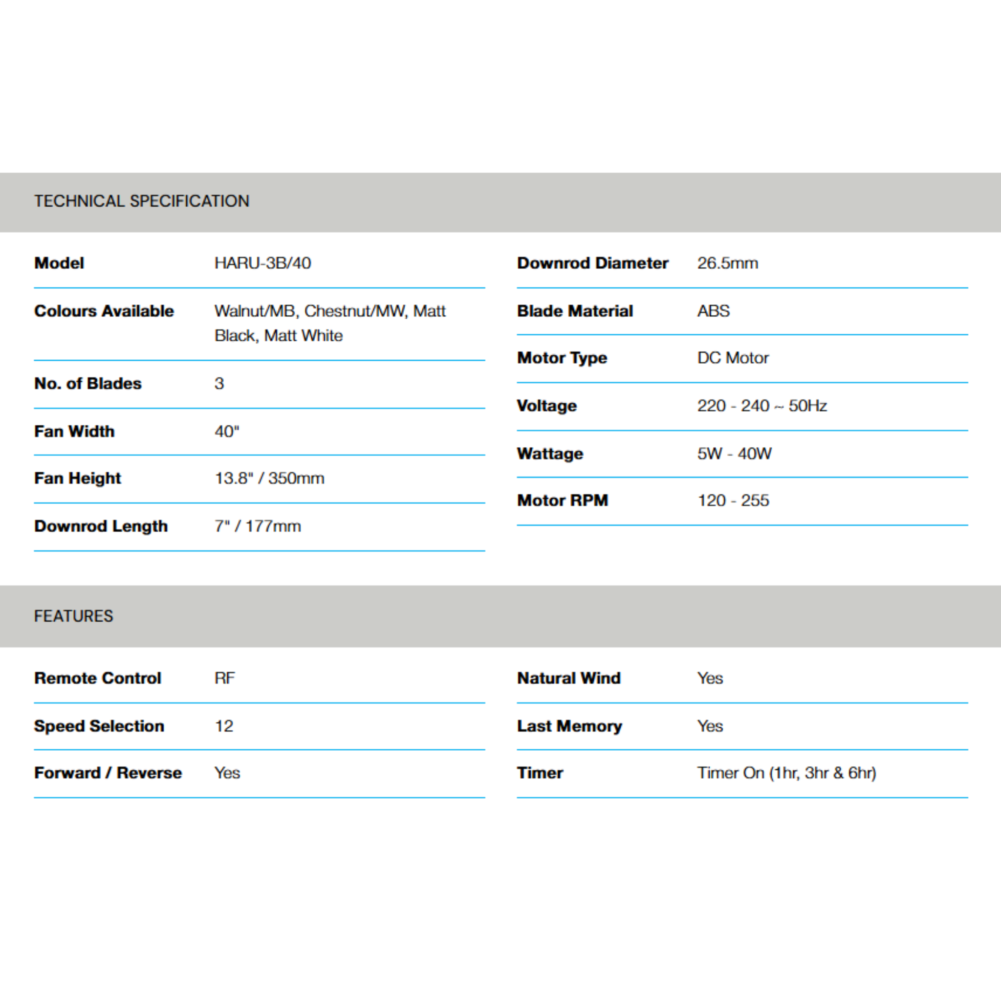 Buy Alpha HARU-3B 40" DC Fan with rustic style. Features 3 wood-design blades & 6 speeds. Original 1 Year Warranty & best price. Shop now.