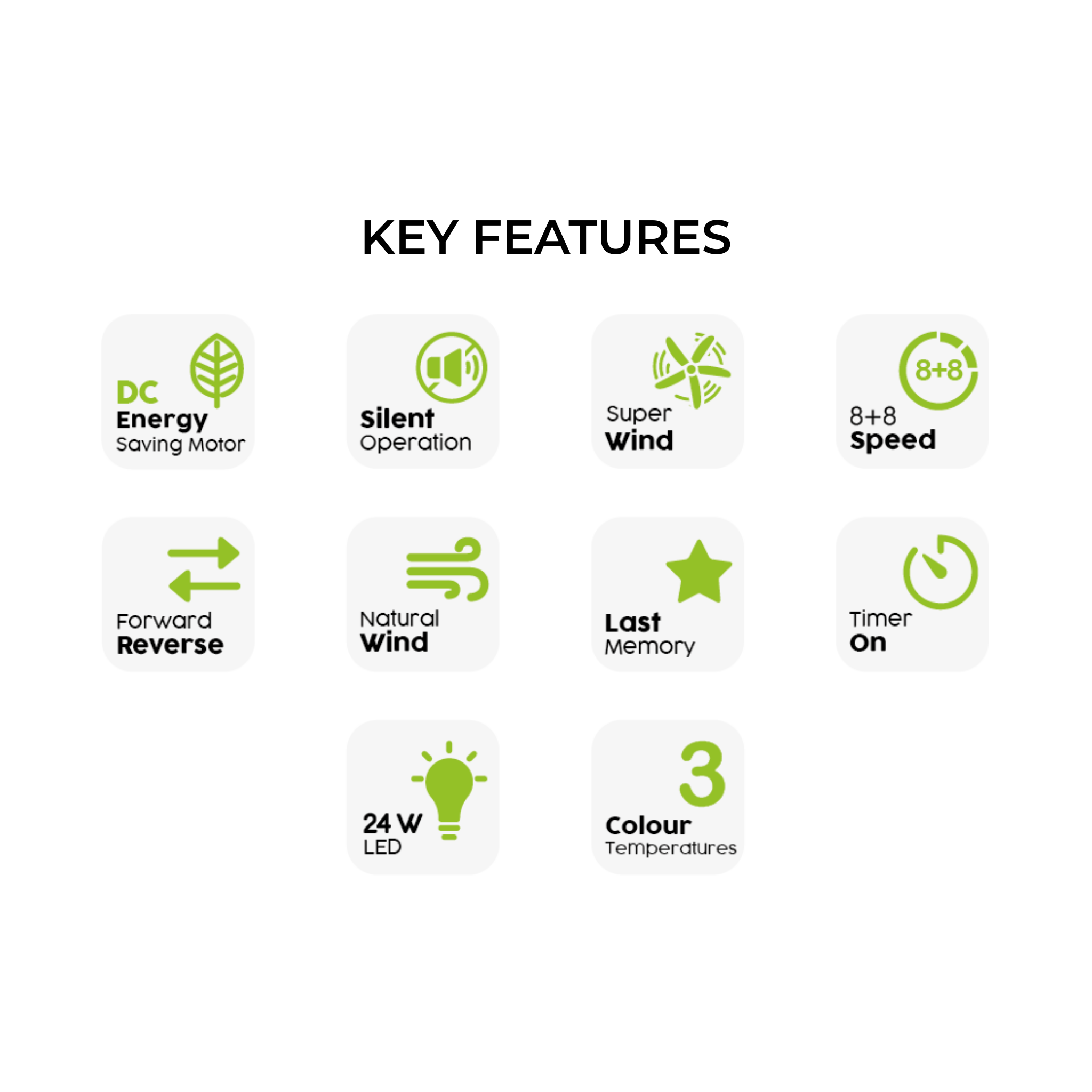 Speed Settings: 8 speed settings with last memory function