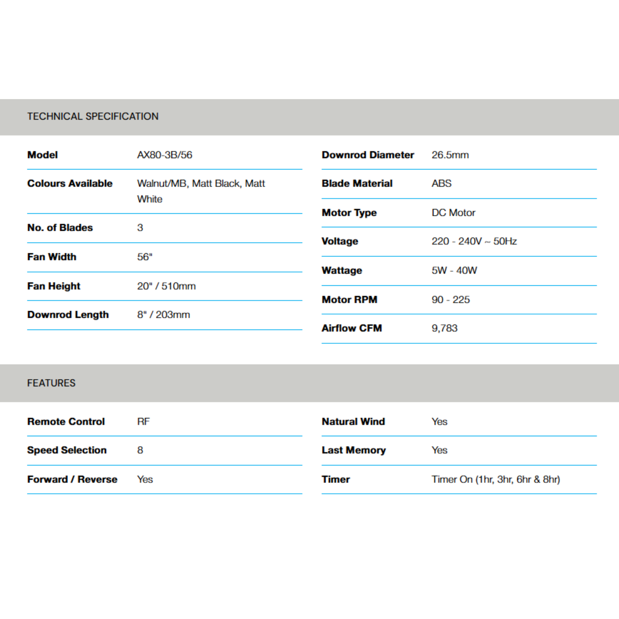 Buy Alpha AX80 56" Ceiling Fan with basic cooling. Features 3 metal blades & 5 speeds. Original 1 Year Warranty & best price. Shop now.