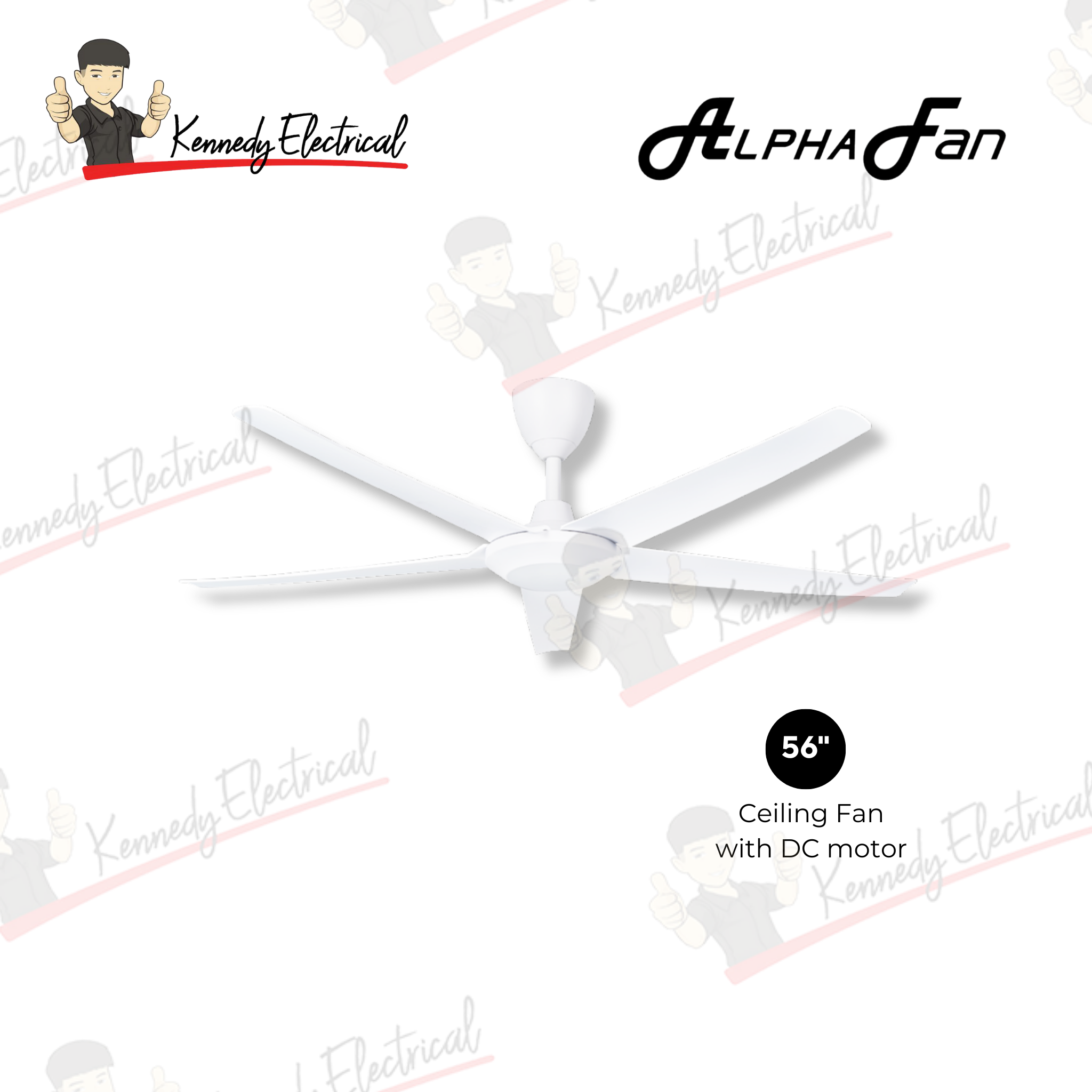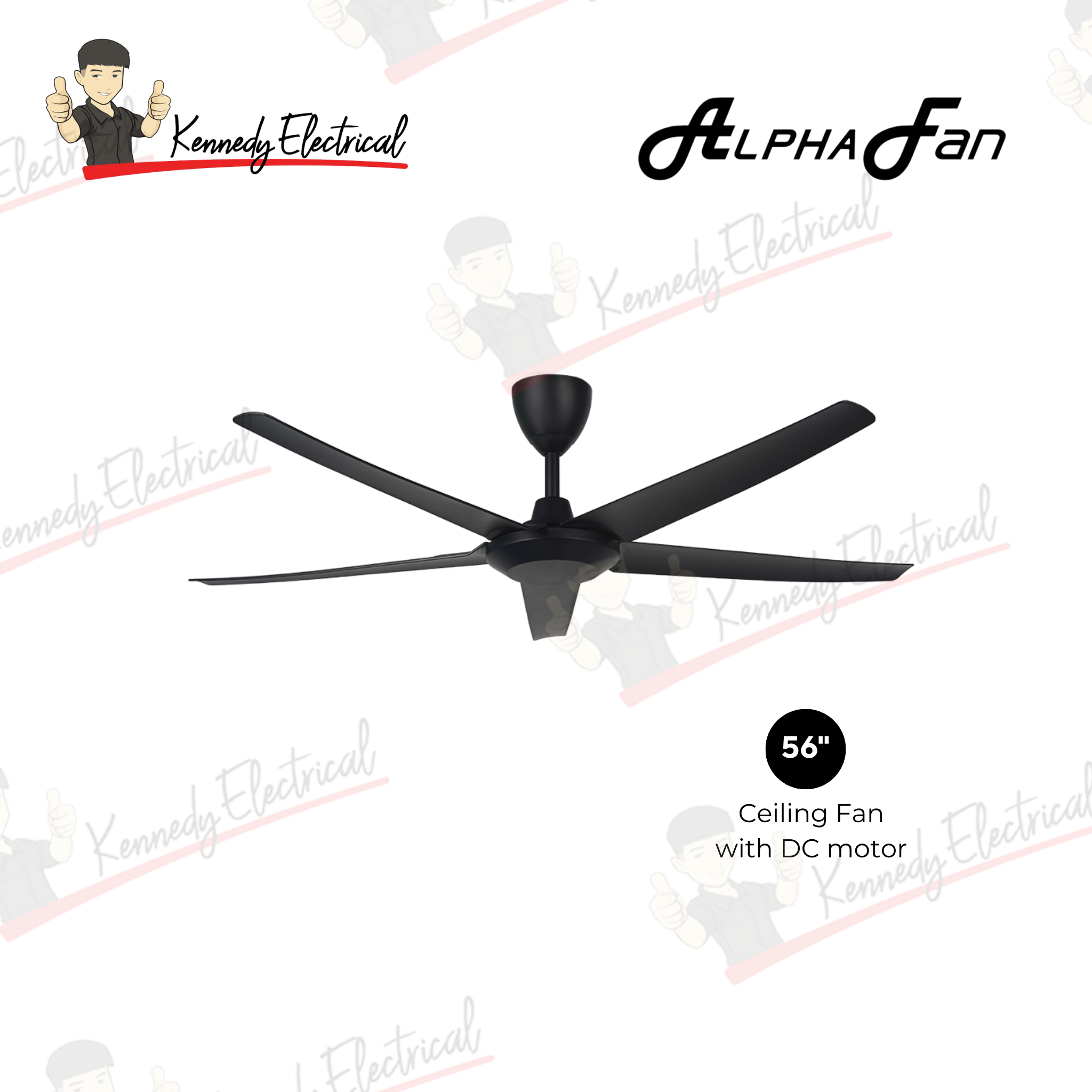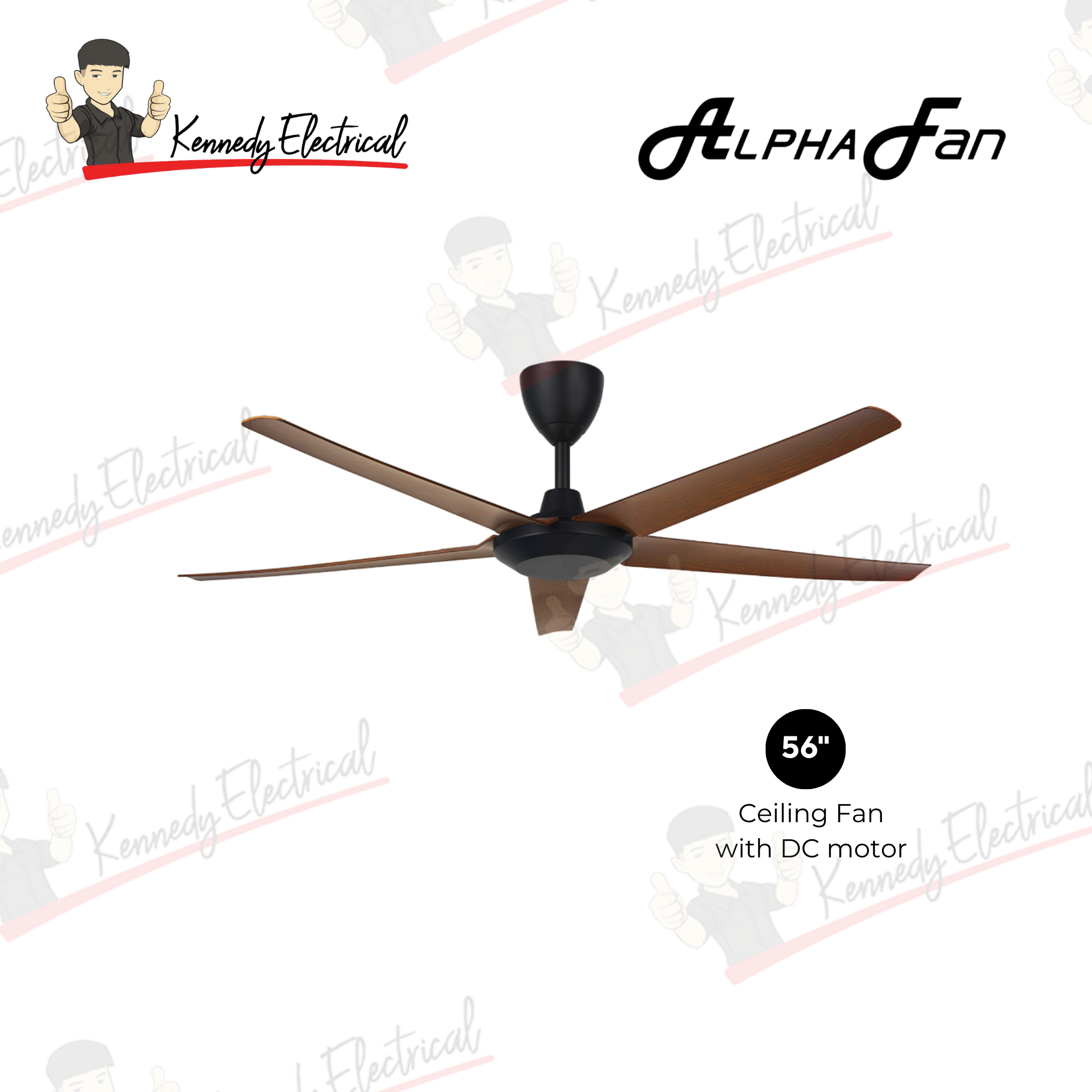 Alpha 56" Ac Motor Abs Ceiling Fan (Matt Black/Matt White/Walnut/Mb) CX10-5B