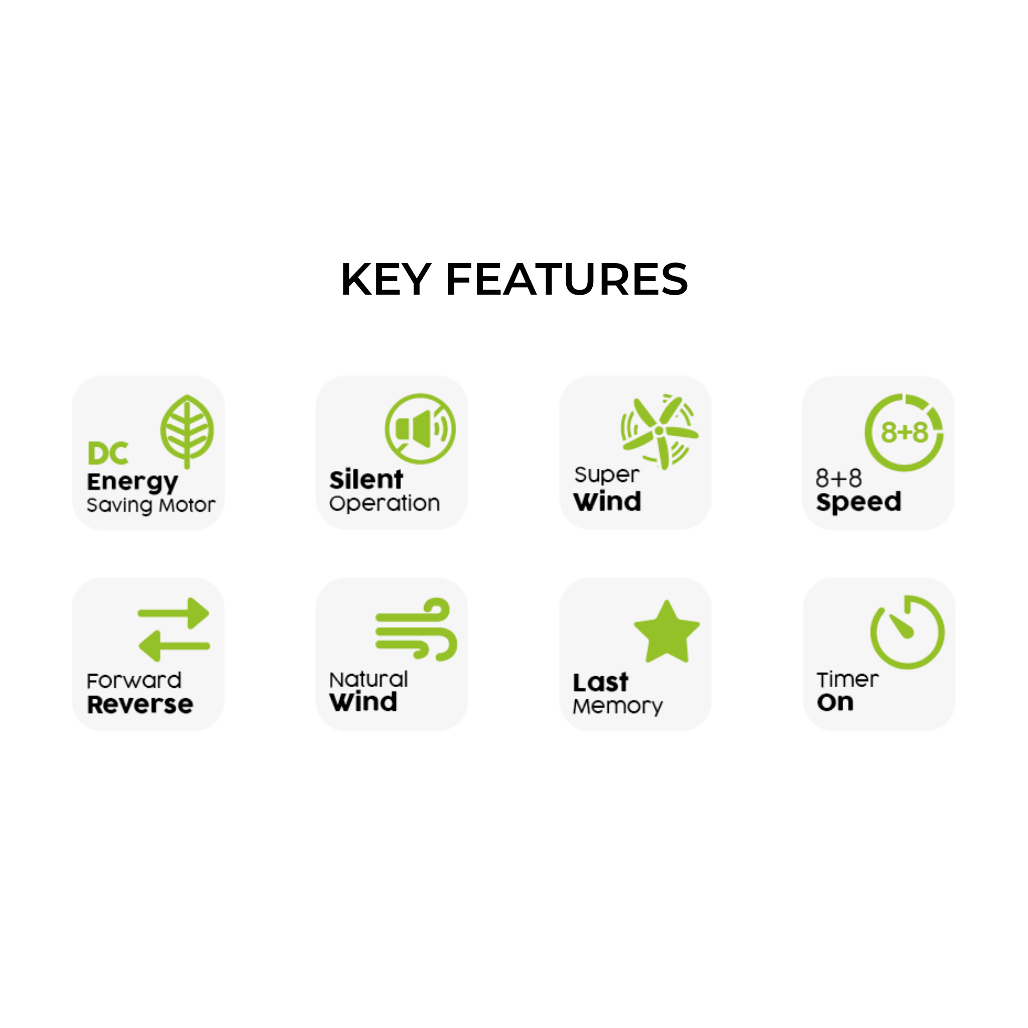 Speed Settings: 8 speed settings with last memory function