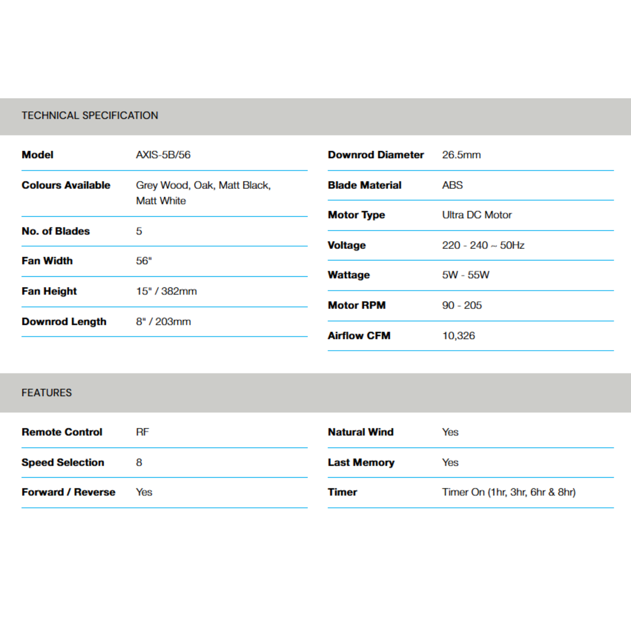 Buy Alpha AXIS-5B 56" Ceiling Fan with classic 5-blade. Features AC motor & remote. Original 1 Year Warranty & best price. Shop now.
