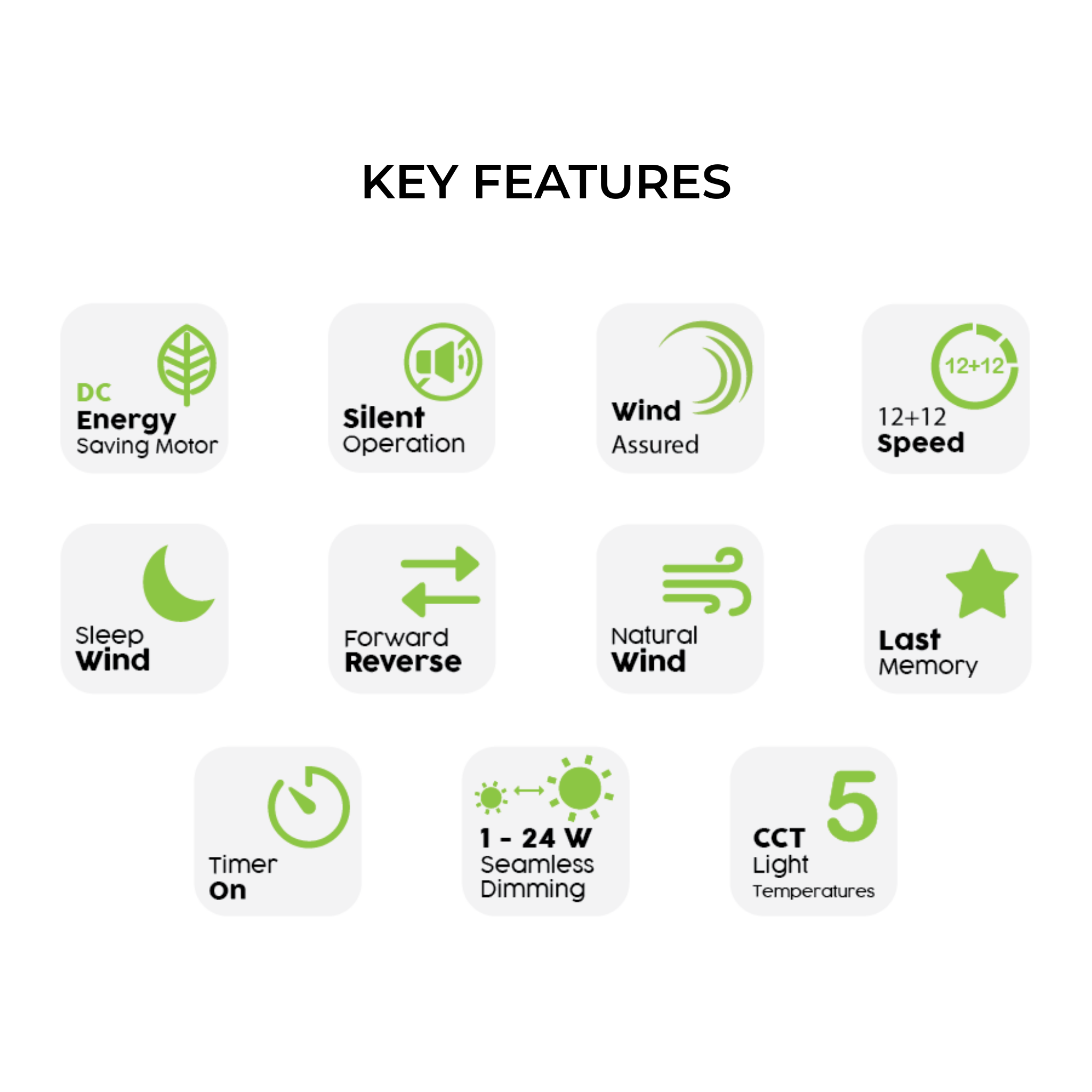 Model: VISTA-8B Series Blade Span: 60" Number of Blades: 8 Blade Material: ABS Motor Type: DC Motor Speed Settings: 12 Speed (Forward/Reverse) Control: RF Remote Control Lighting: LED (3 Colour: Warm, Daylight, White) - *For LED Models only* Available Colours: Standard, DARKKOA Warranty: 10 Years Warranty on Motor 2 Years Warranty on Internal Parts 1 Year Warranty on On-Site Service