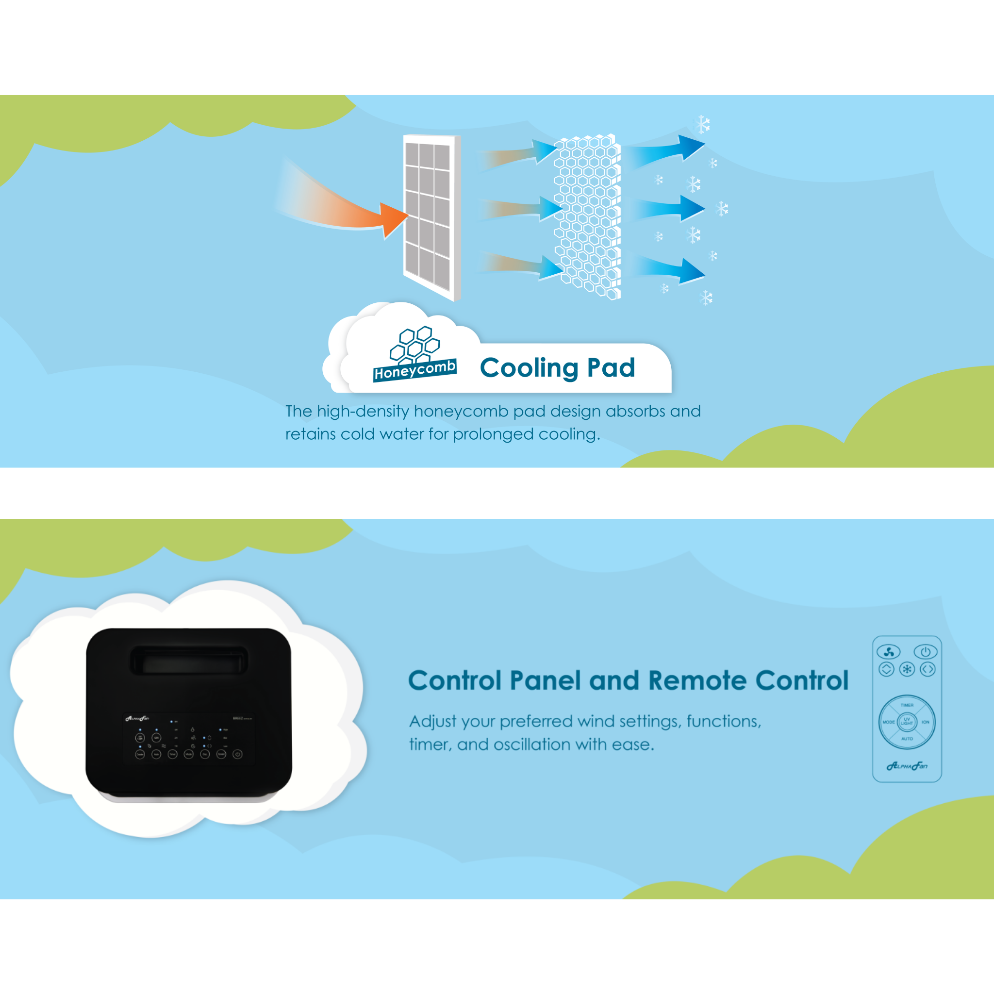 Model: BREEZ Air Cooler Type: Portable Air Cooler Capacity: 6L Features: - Portable Design - Water Tank with Ice Pack compartment - 3 Speed Settings - Timer Function Warranty: 1 Year Warranty on Internal Parts (Alpha Standard)