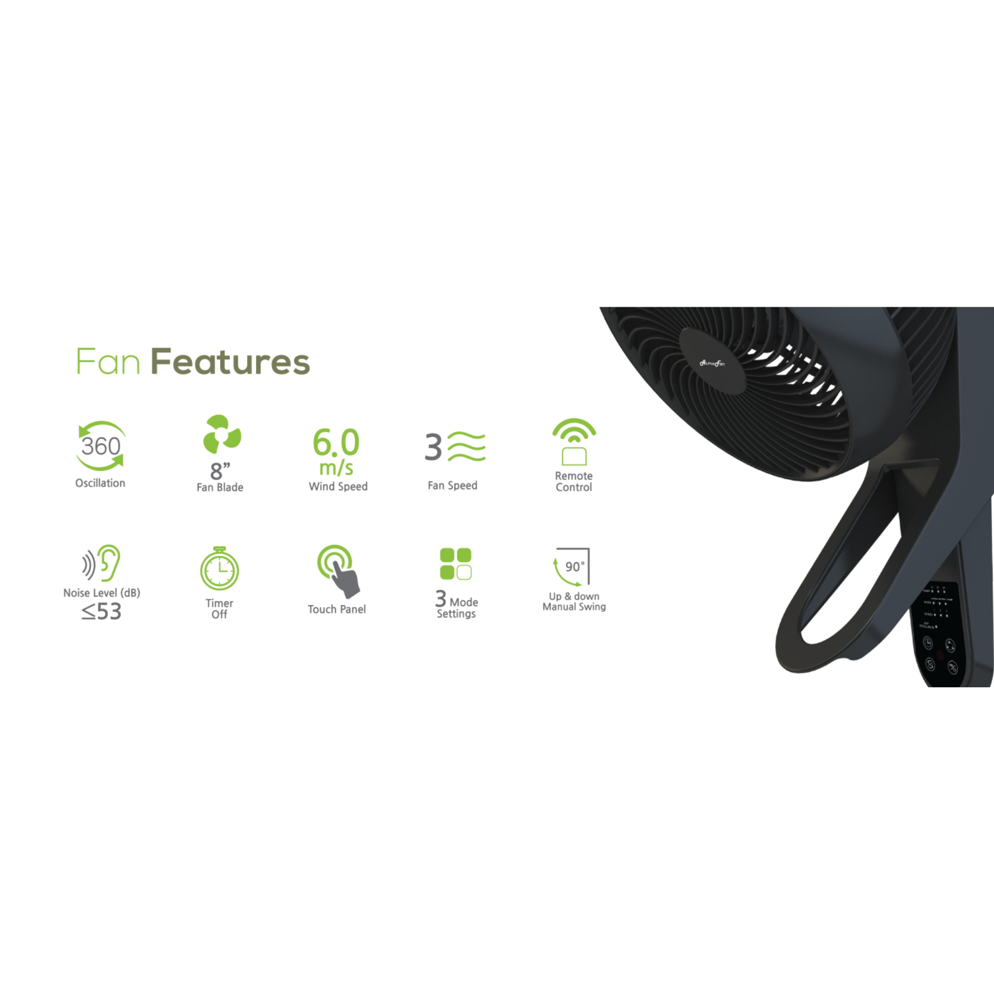 Model: MOTTO WF Series Fan Size: 8" Motor Type: AC, DC Motor Control: Remote Control Type: Wall Fan Available Colours: BLACK, White, WHITE/BLACK, MATT BLACK Warranty: 1 Year Warranty on On-Site Service (Alpha Standard)
