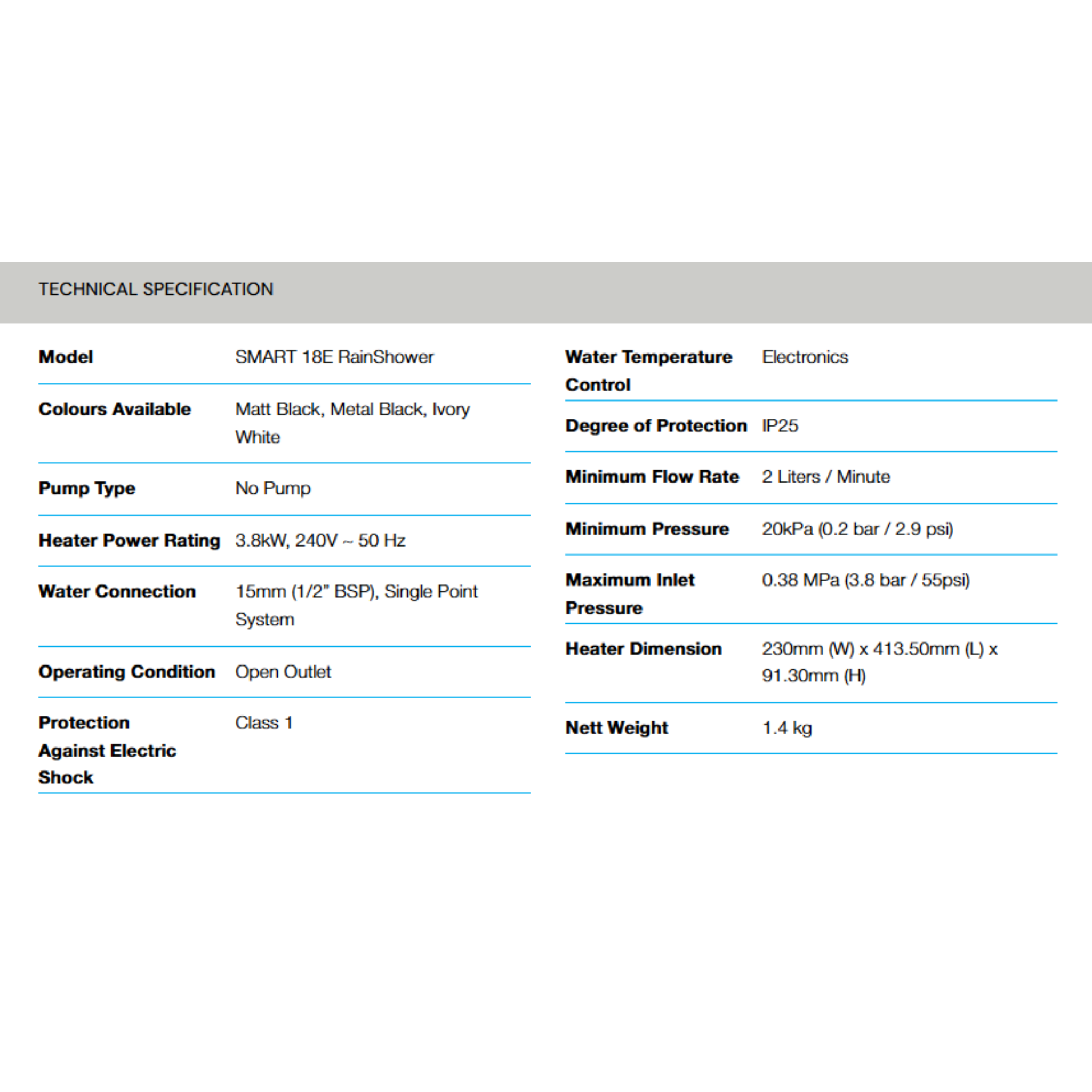 Type: Instant Water Heater with Rainshower (Select Models)