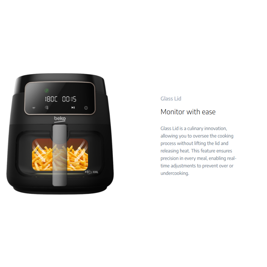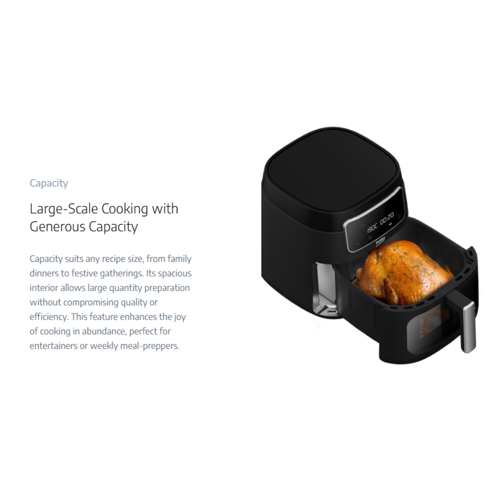 Features: • 7.6L Large Capacity. • 1750W Power. • Glass Basket for monitoring cooking. • 9 Preset Cooking Functions. • Touch Control Digital Display. • Warranty: 2 Years General Warranty. • **Warranty:** 2 Years