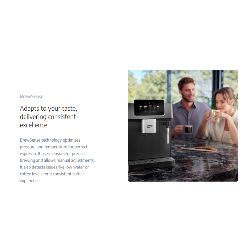 Features: • Bean-to-Cup Fully Automatic Machine. • 19 Bar Pressure for rich crema. • Integrated Milk Frother (Steam Wand). • Touch Control Panel. • 2.0L Water Tank. • Warranty: 2 Years General Warranty. • **Warranty:** 2 Years