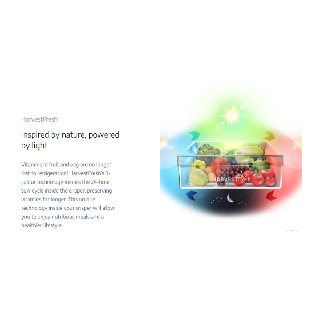 • 371L Gross / 340L Net Capacity (Top Mount). • ProSmart™ Inverter Compressor. • HarvestFresh™ technology. • NeoFrost™ Dual Cooling. • **Warranty: 2 Years General, 12 Years Compressor.**