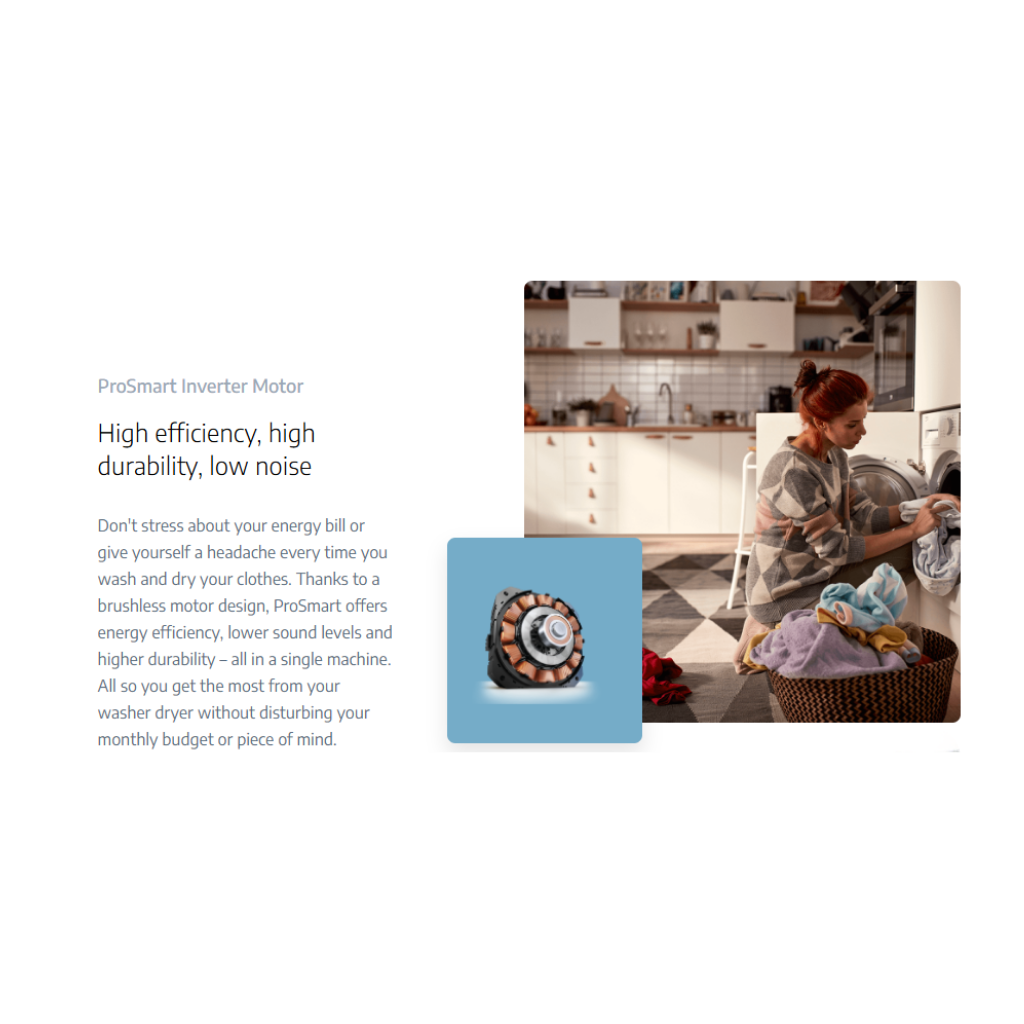 • 9kg Front Load. • ProSmart™ Inverter Motor. • SteamCure™ technology. • Manhattan Grey finish. • 1400 RPM Spin Speed. • **Warranty: 2 Years General, 12 Years Motor.**