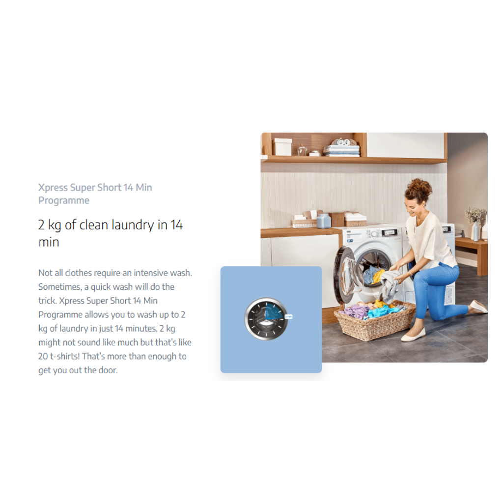 • 8kg Front Load. • ProSmart™ Inverter Motor. • SteamCure™ technology. • StainExpert™ program. • 1200 RPM Spin Speed. • **Warranty: 2 Years General, 12 Years Motor.**