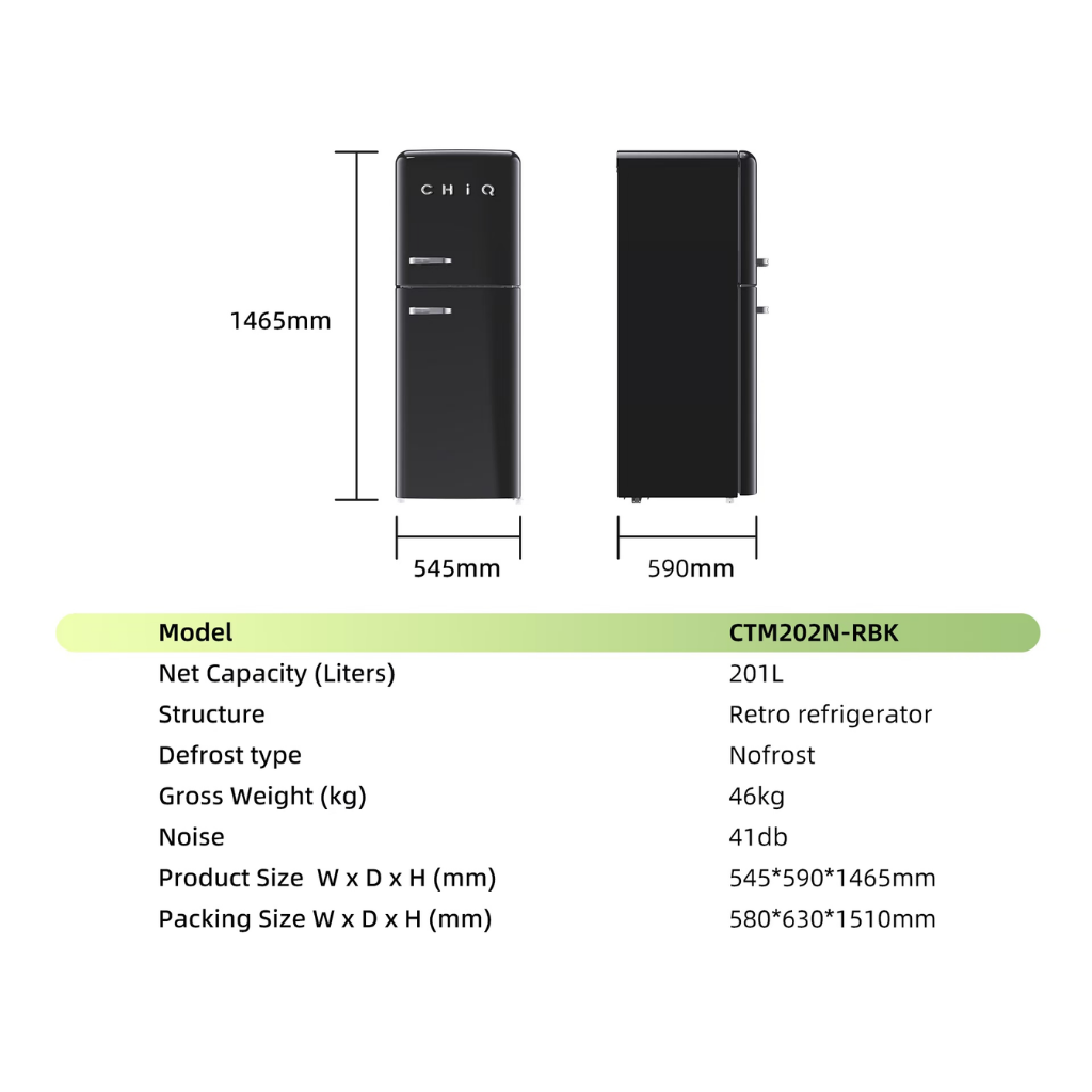 ChiQ 258L Retro 2 Doors Frost Free Refrigerator CTM202N-RBK