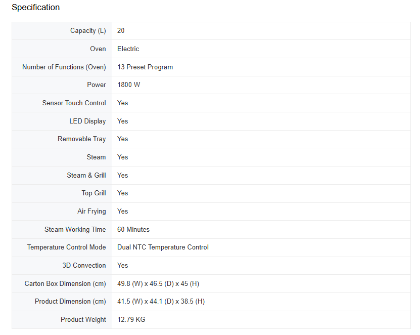 Elba Combi Steam Oven ESGO-N2016SD(MG)