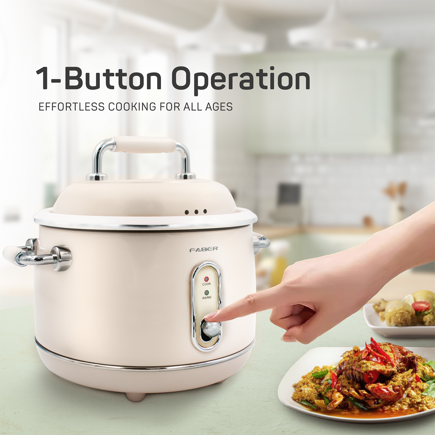Faber Vintage Rice Cooker 1.0L. Stylish cooking with floral retro design. 1-Year Warranty. Shop now!