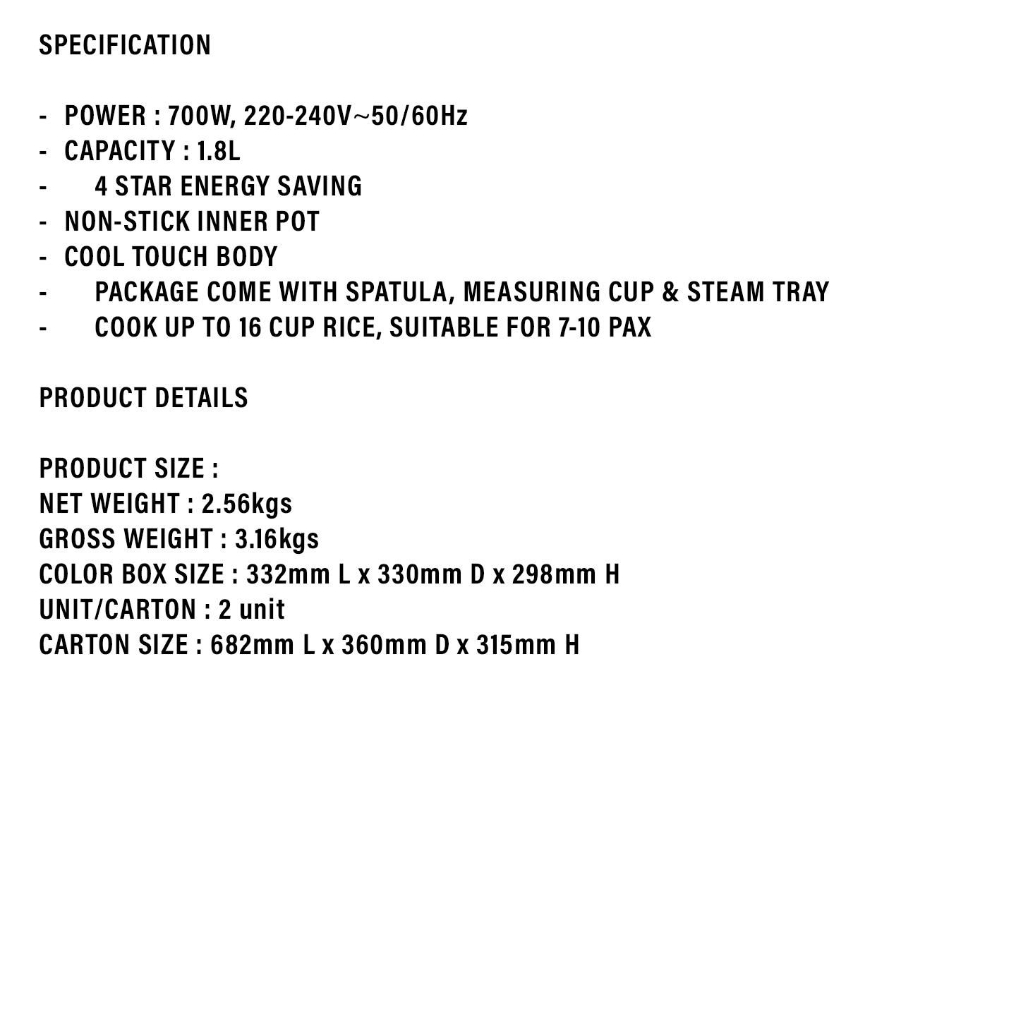 Faber 1.8L Jar Rice Cooker (FRC5818)