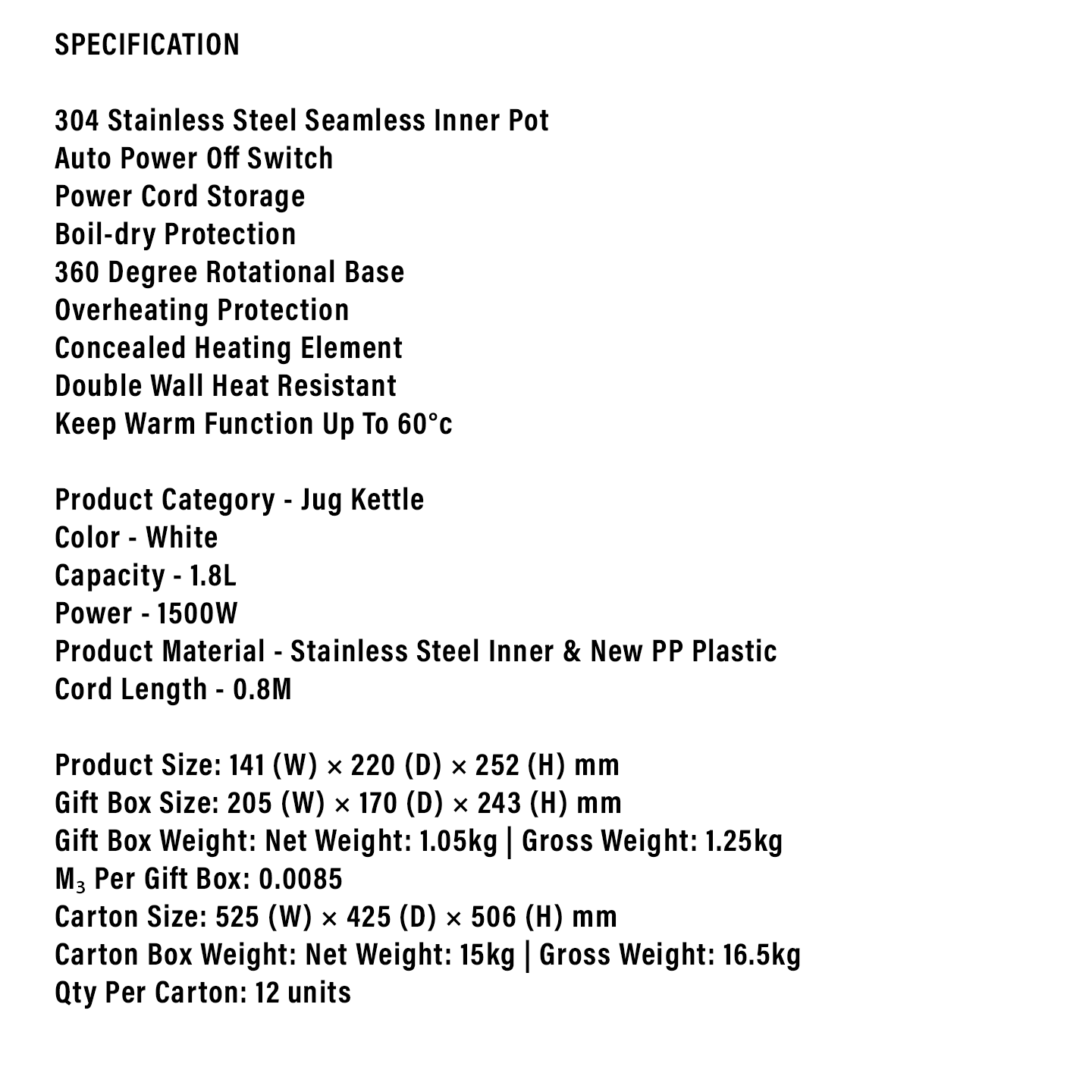 Faber 1.8L Jug Kettle DW X1799WH