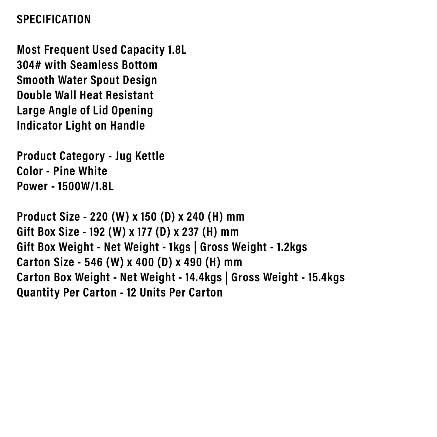 Faber 1.8L Pine-S Jug Kettle FCK DW1808WH