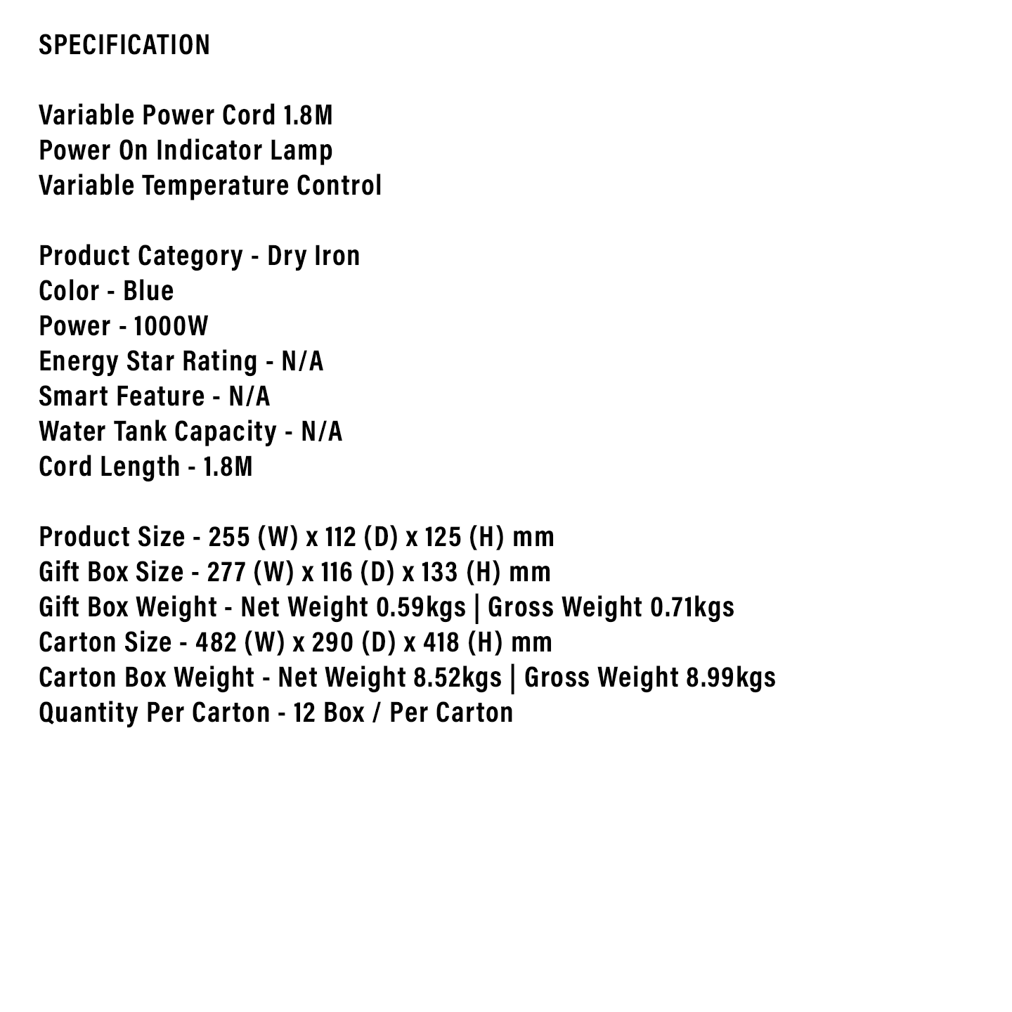 Faber Dry Iron 108. Smooth ironing with teflon non-stick soleplate. 1-Year Warranty. Shop today!