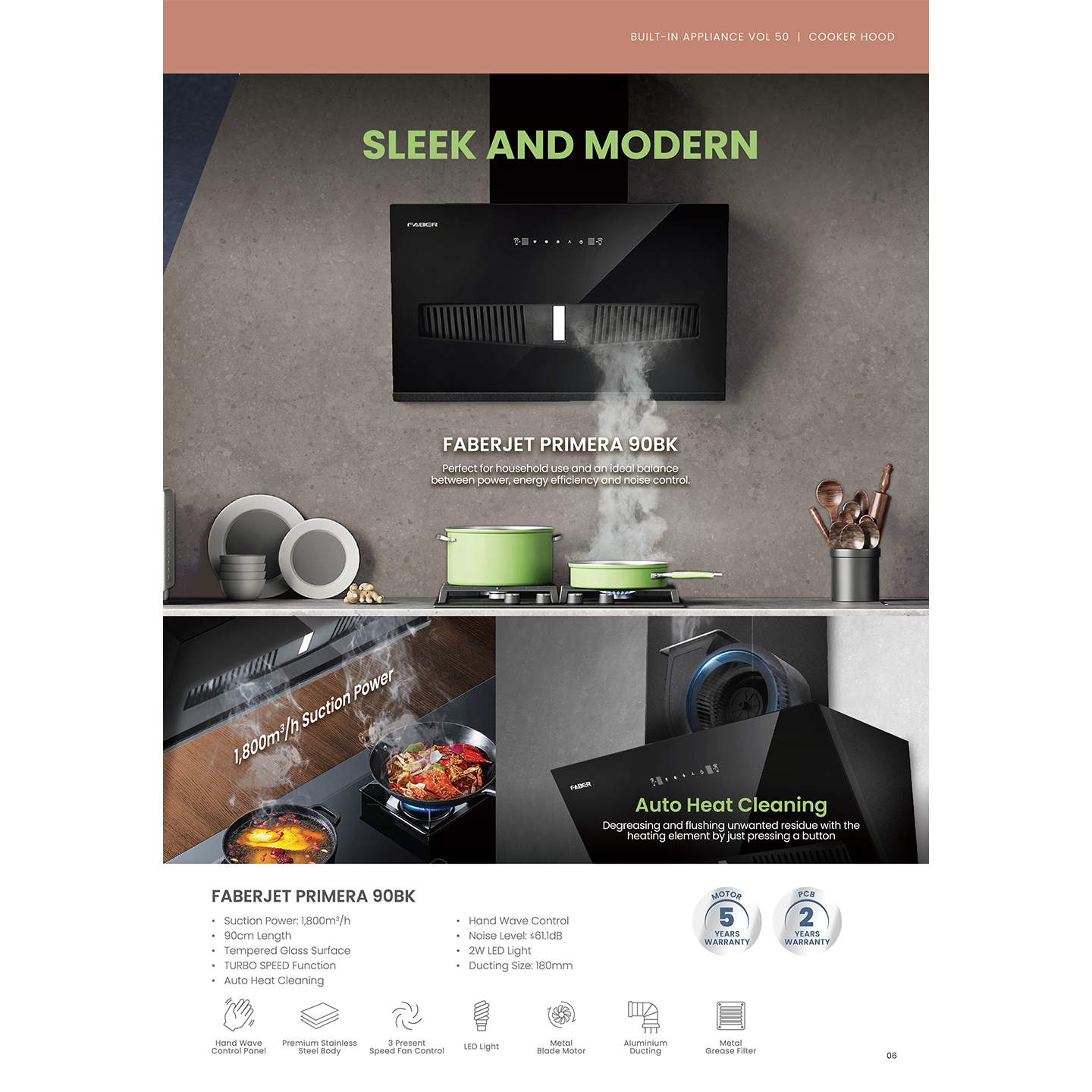 Faber Primera Hood. Remove odors instantly with 1800m3/h power. 1-Year Gen/5-Year Motor Warranty. Buy now!