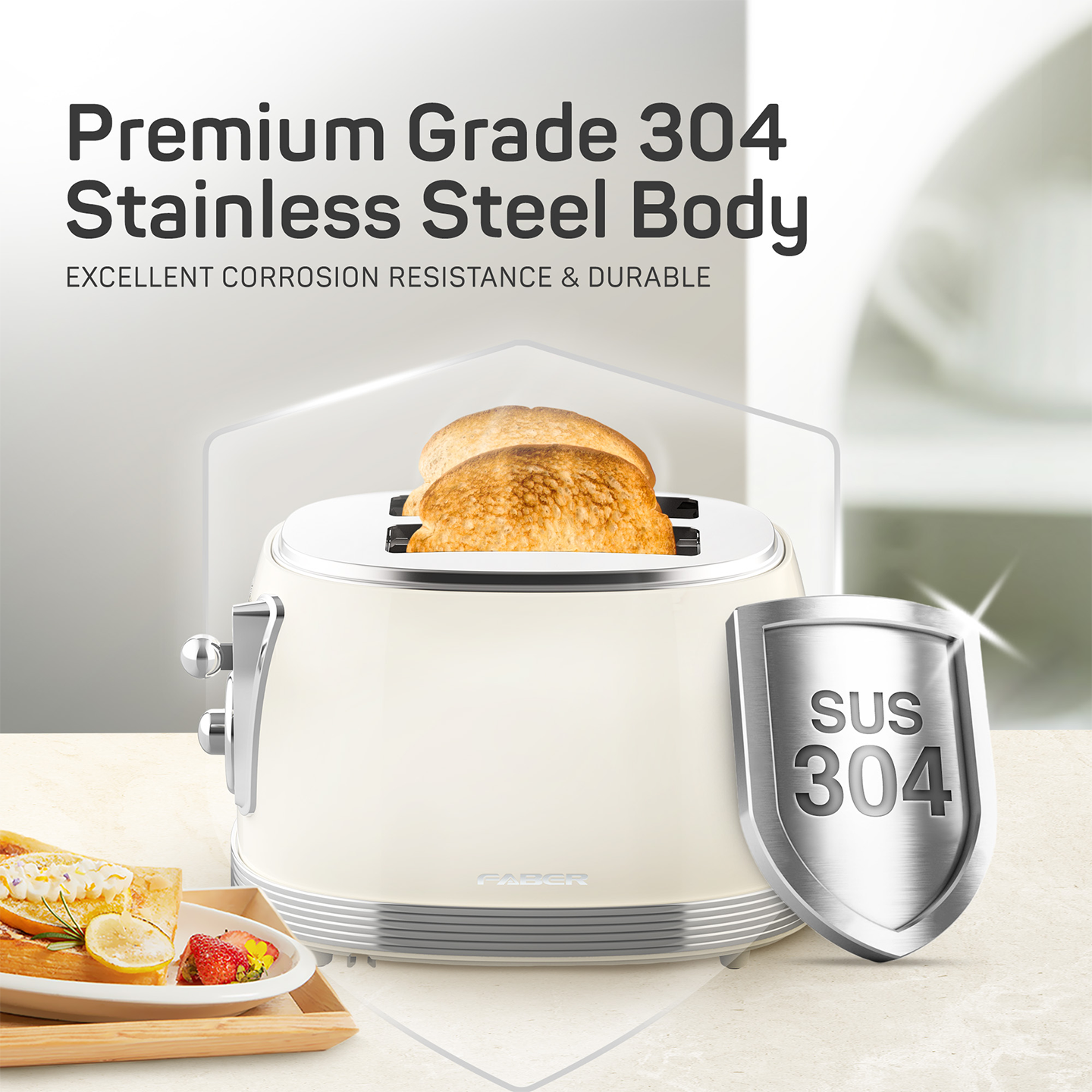 Faber Vintage Toaster 2-Slice. Perfect browning with classic cream finish. 1-Year Warranty. Order today!
