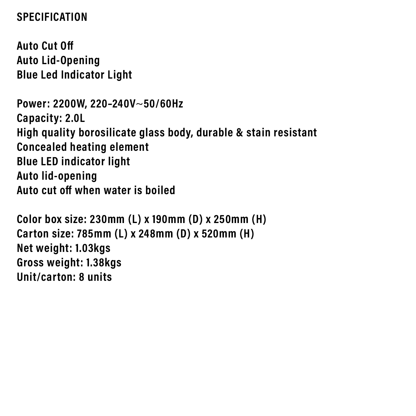 Faber Glass Kettle 2.0L. Watch water boil with LED illumination. 1-Year Warranty. Order now!