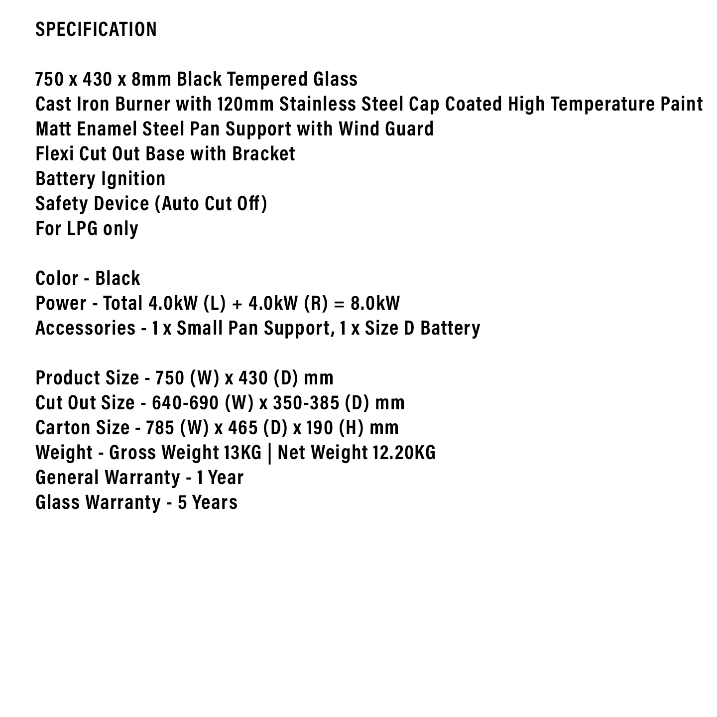 Faber Gas Hob 4.0kW. Durable surface with 8mm tempered glass. 1-Year Warranty. Order today!