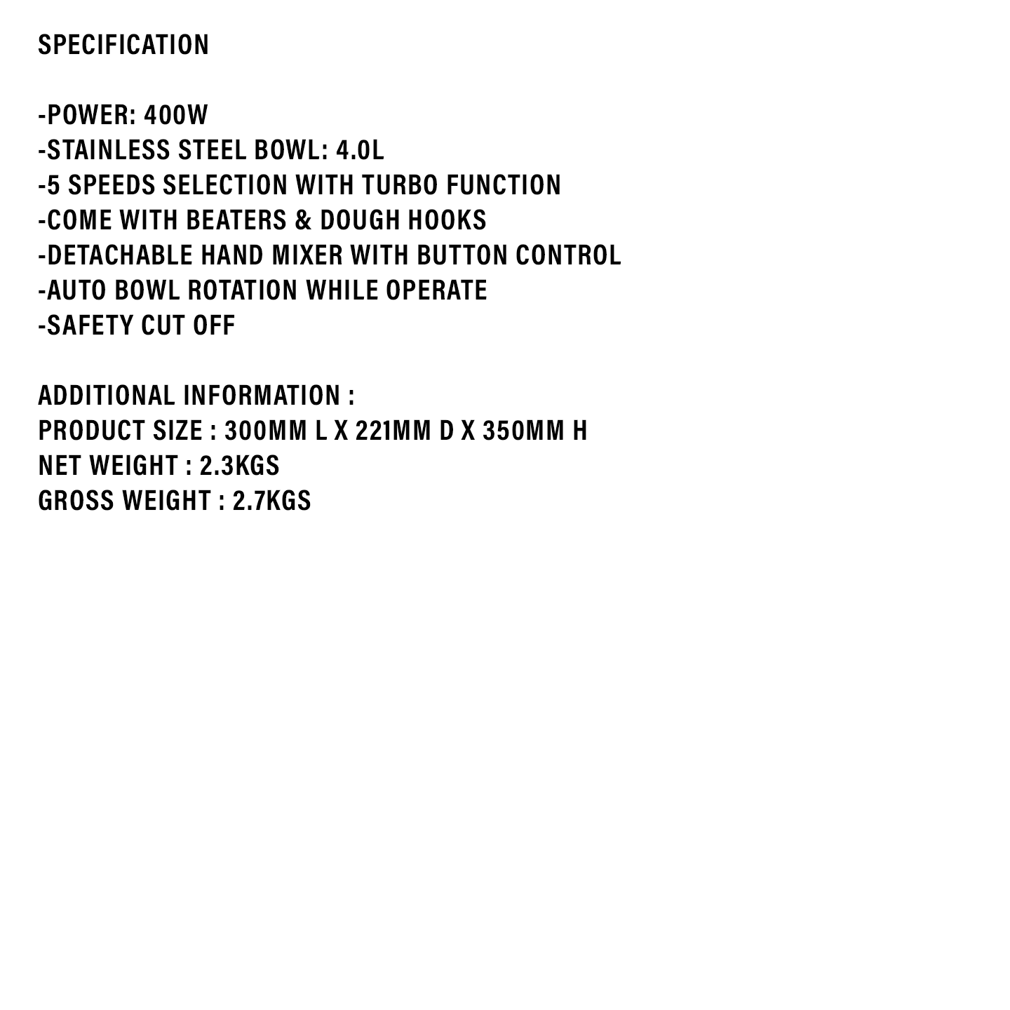 Faber 4.0L Stand Mixer FM 540SS
