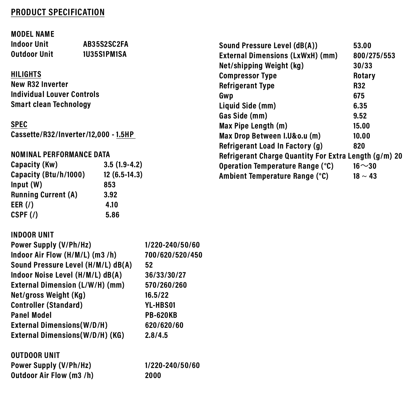 Buy Haier 1.5HP Cassette AC (1U35S1PM1SA). Features ideal for small offices. 1 Year General + 5 Years Compressor Warranty. Shop now.