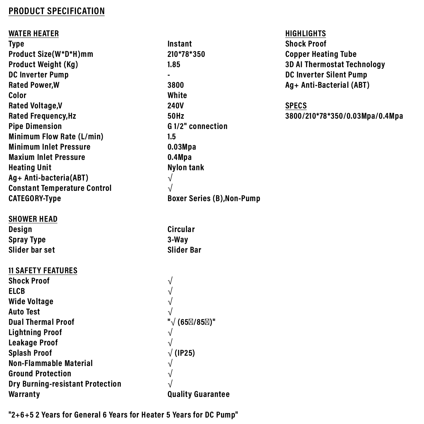 Haier 3.8kW DC Pump Water Heater Black (EI38M-BP1WB)