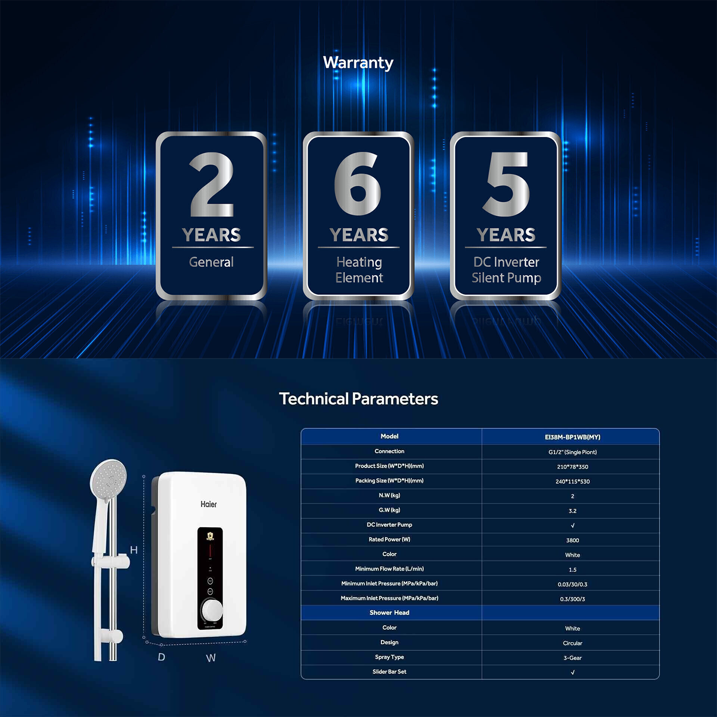 Buy Haier 3.8kW DC Pump Heater (EI38M-BP1WB) Black. Features sleek design & powerful DC pump. 2 Years General + 5 Years Pump Warranty. Shop now.