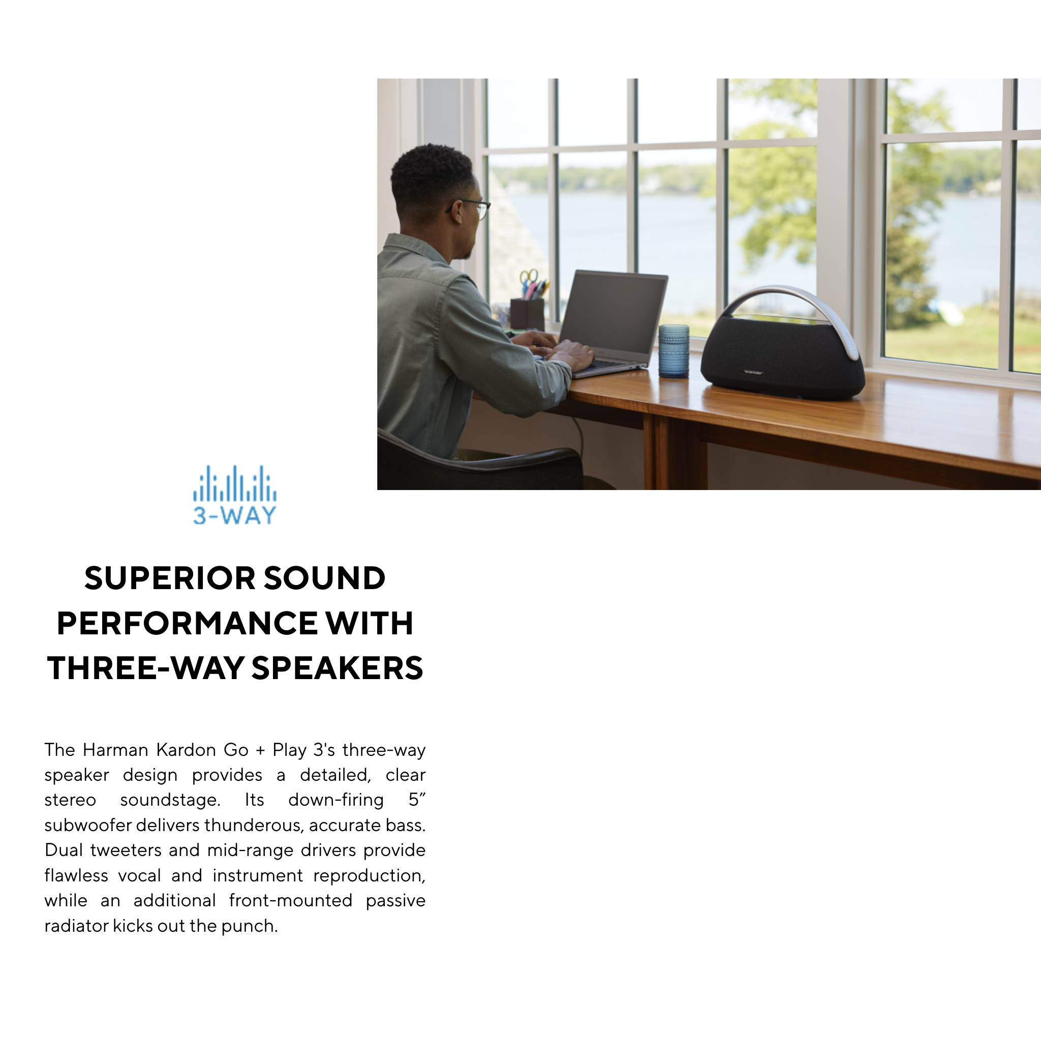 Buy today! The Go + Play 3 delivers powerful 3-way stereo sound and 8-hour battery life. Premium design with a 1-year official warranty.