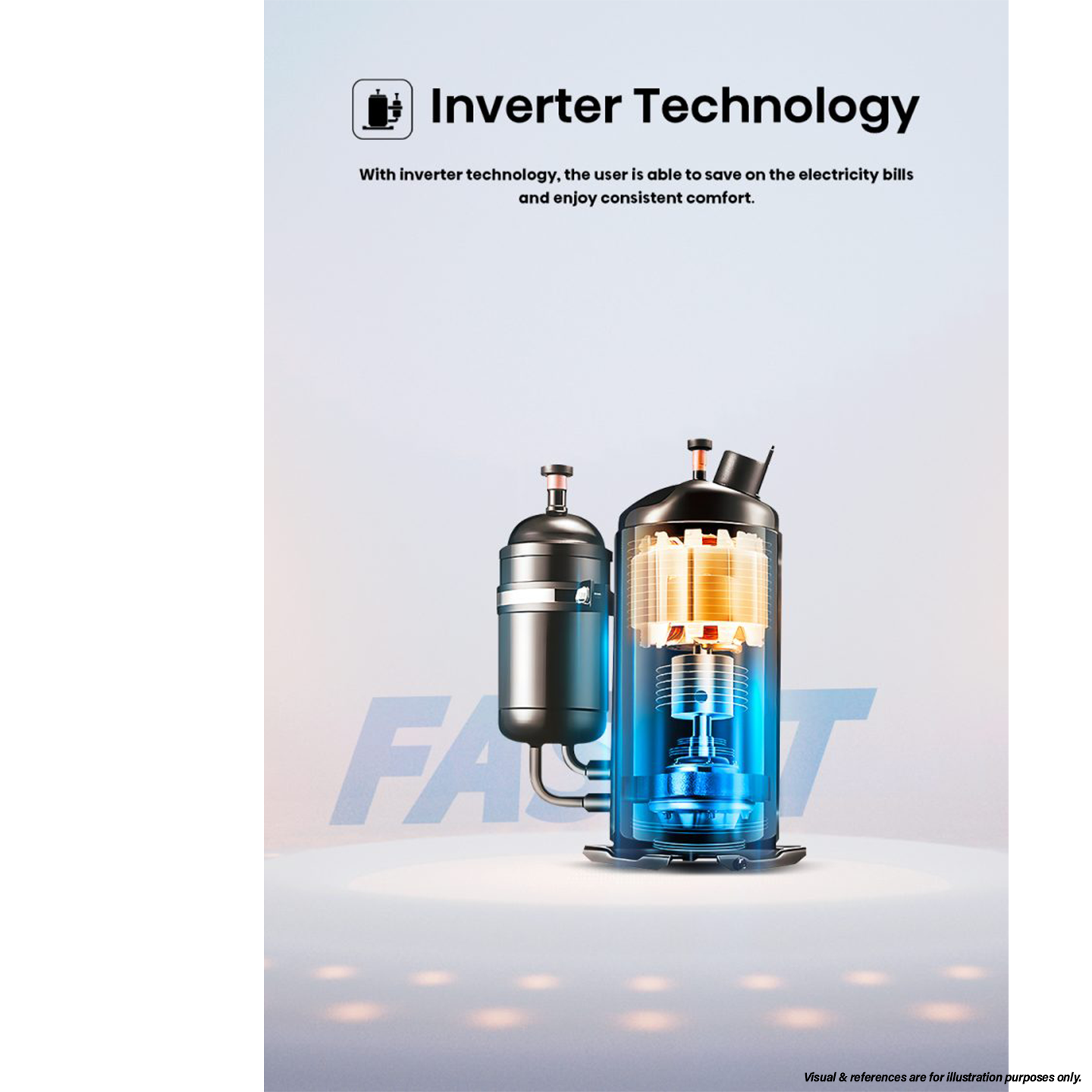 • Capacity: 1.5 HP / ~12,000 BTU/h • Type: R32 Standard Inverter Wall Split • Features: Energy Saving, Rapid Cooling, 4D Auto Swing (Check spec), Self-Cleaning • Warranty: 2 Years General + 5 Years Compressor Warranty