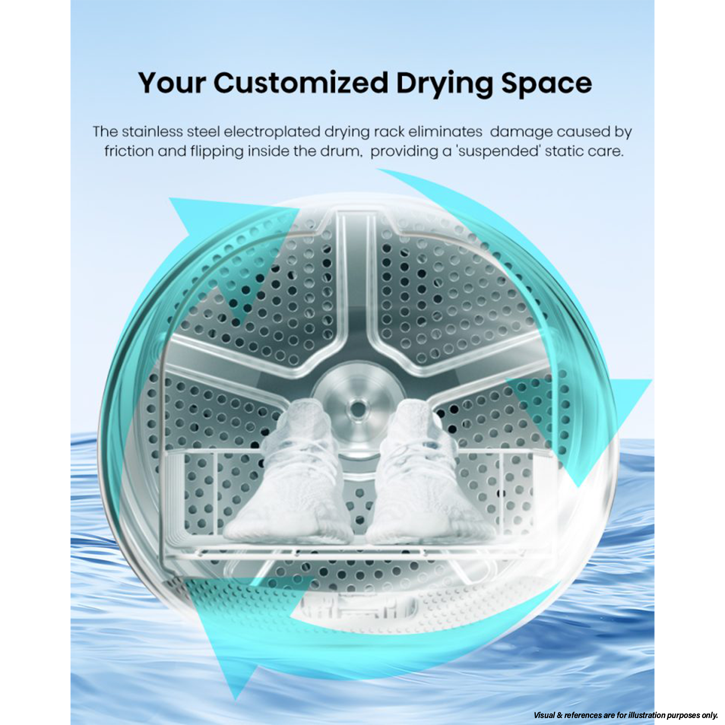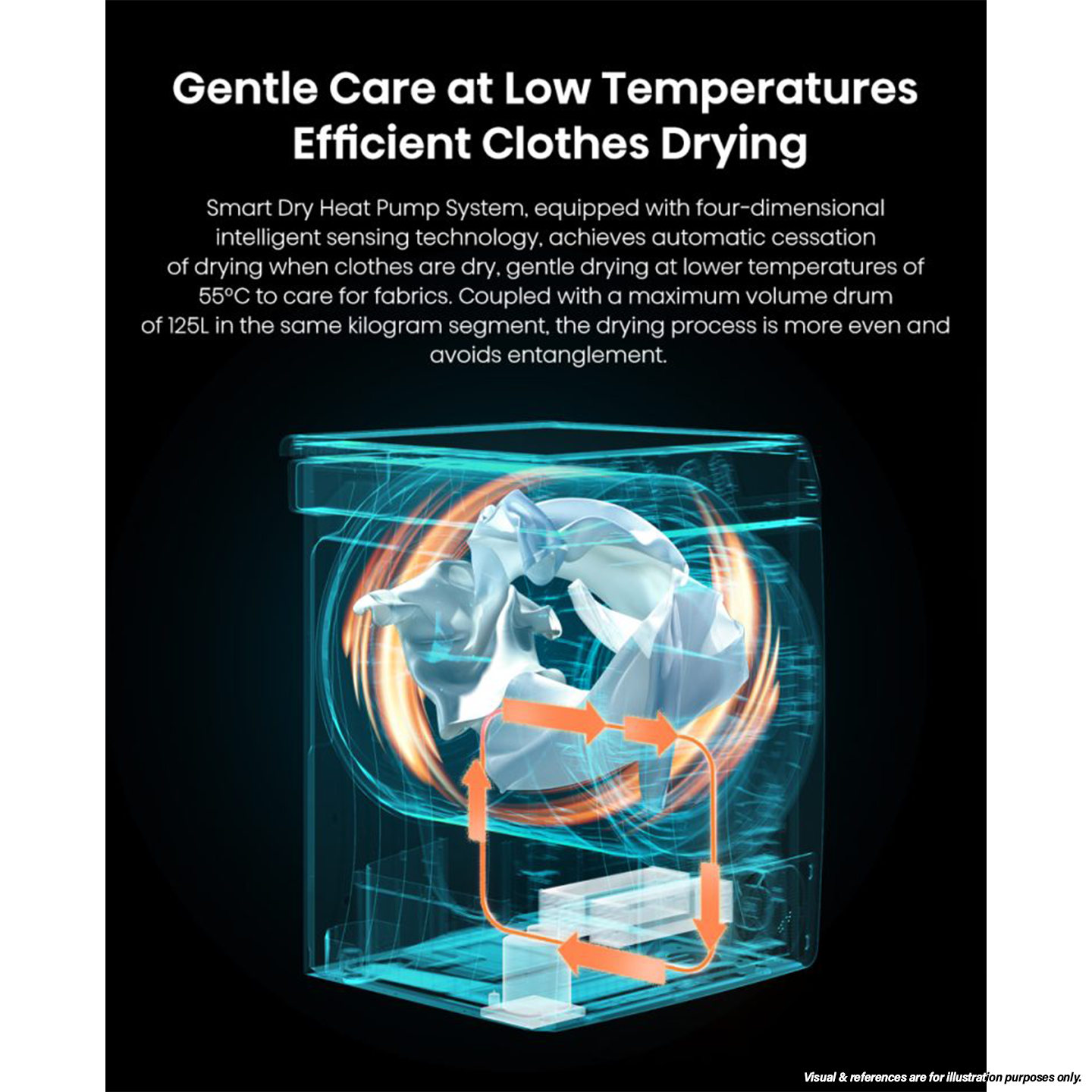 • Capacity: 10.0 Kg Drying • Type: Heat Pump Dryer • Features: Energy Saving Heat Pump, Gentle Drying, Quick Dry 30', Anti-Crease, Black Finish • Warranty: 2 Years General + 12 Years Motor Warranty (Verify with dealer)
