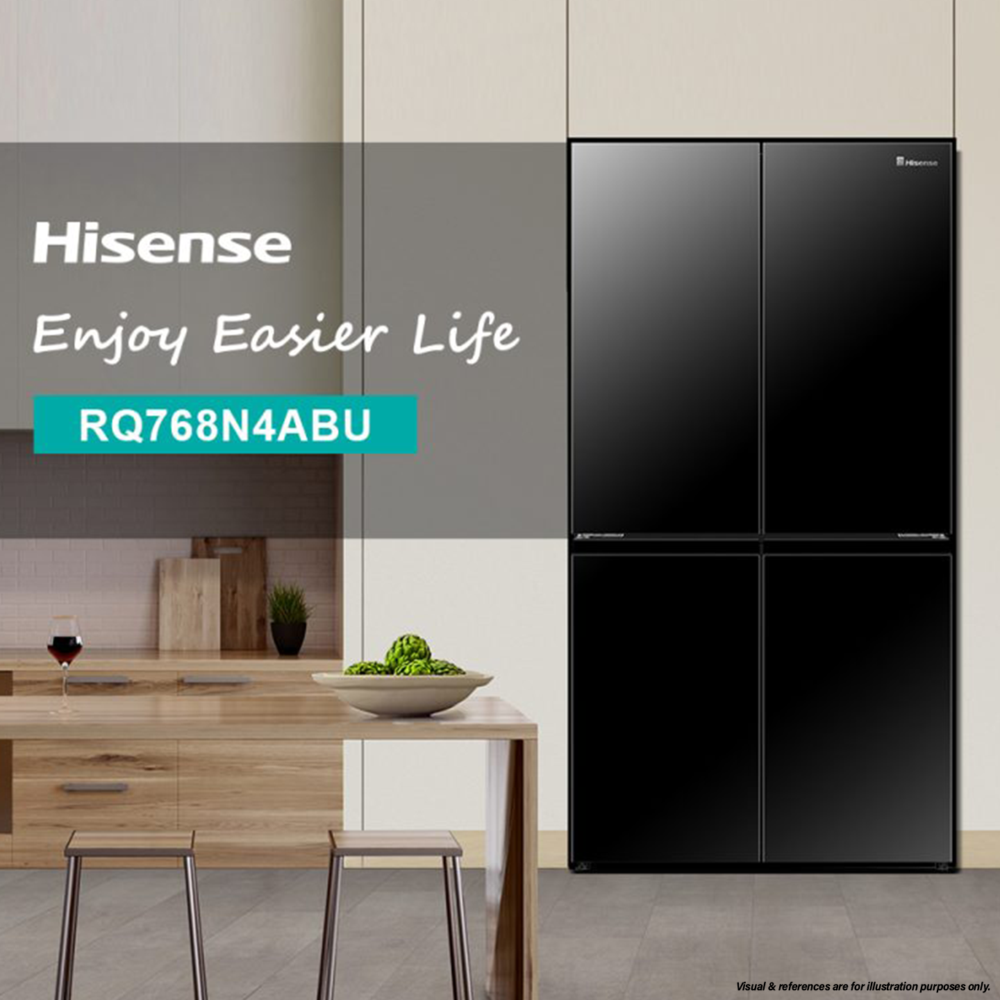 Hisense 720L 4 Door Inverter Refridgerator Black Glass RQ768N4ABU