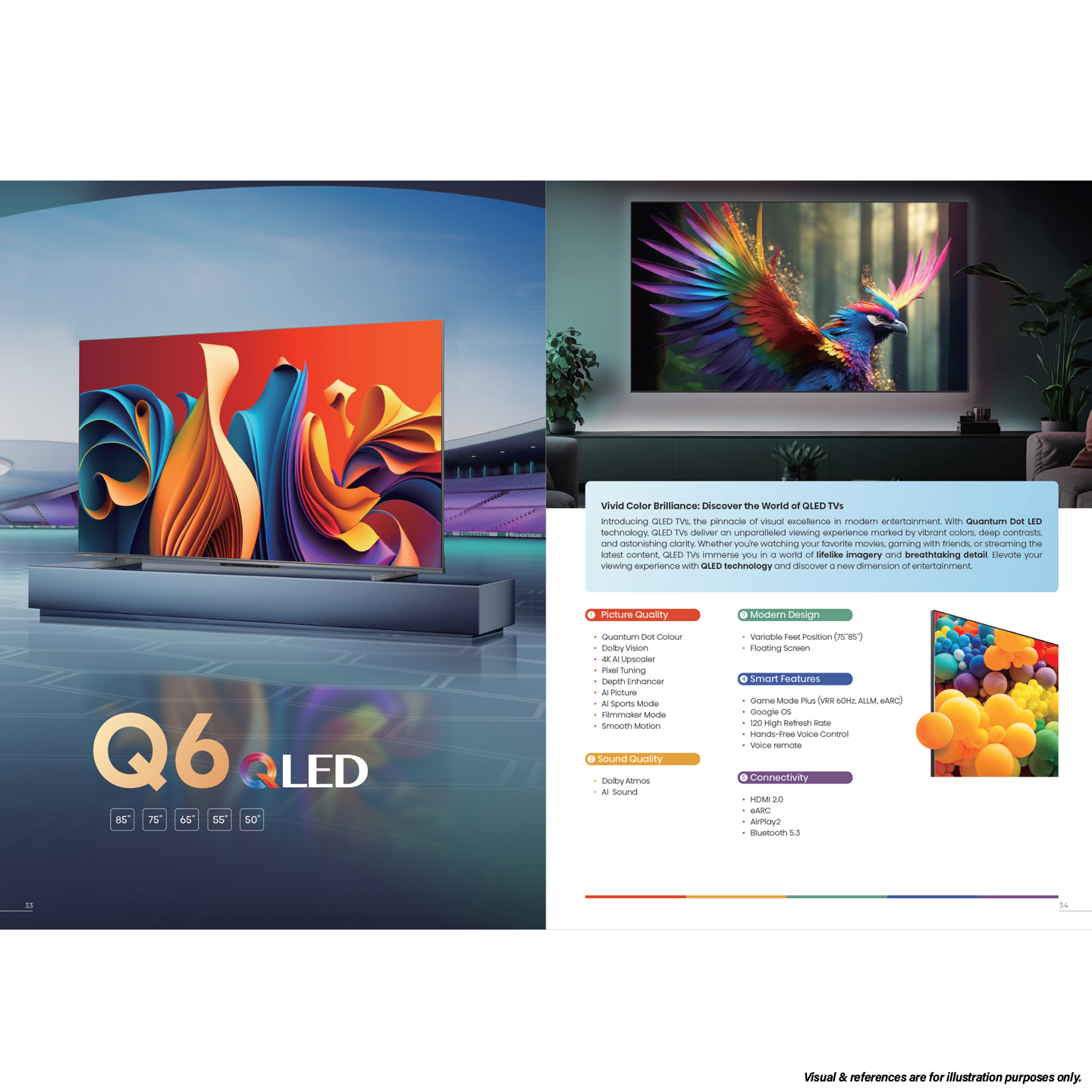 • Size/Screen: 75" QLED 4K UHD • Features: Quantum Dot Colour, Dolby Vision & Atmos, VIDAA Voice, AI Picture, Game Mode Plus • Resolution: 3840 x 2160 (4K UHD) • Warranty: 3 Years General Warranty