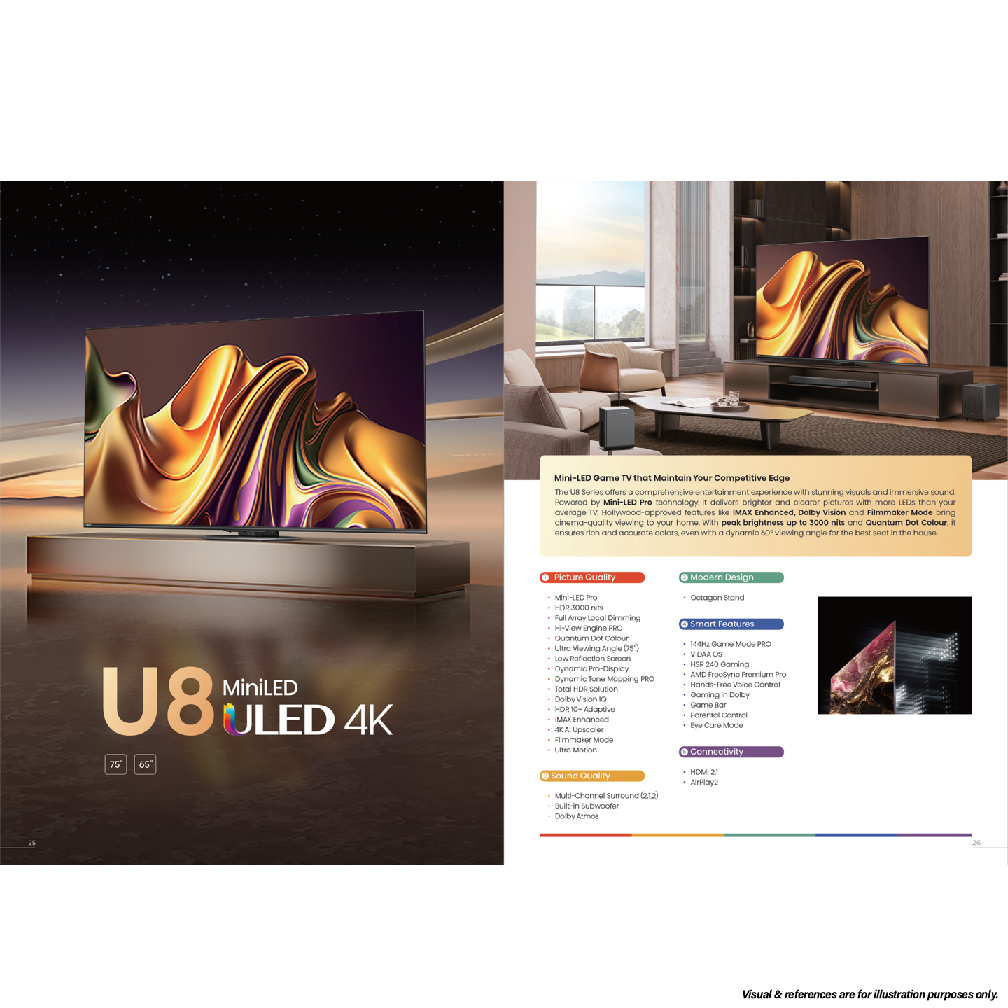 • Size/Screen: 75" Mini-LED ULED 4K • Features: Mini-LED Pro (Full Array Local Dimming), 144Hz Game Mode Pro, Google TV, Dolby Vision IQ • Resolution: 3840 x 2160 (4K UHD) • Warranty: 3 Years General Warranty
