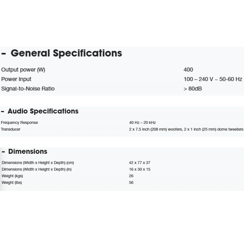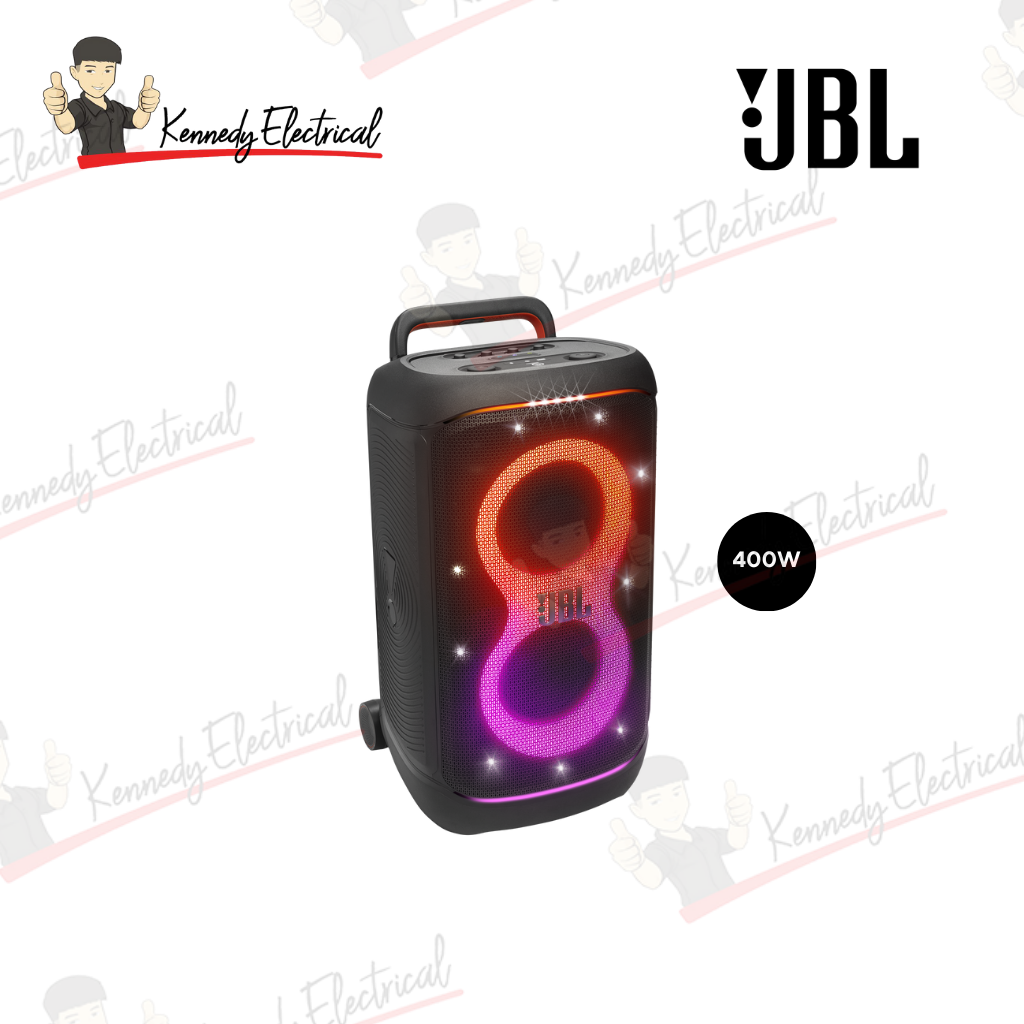 • 400W RMS Output with AI Sound Boost. • Up to 15 Hours Playtime with replaceable battery. • Futuristic Lightshow with strobe effects. • Mic & Guitar Inputs for karaoke. • Auracast enabled for wireless multi-speaker pairing. • **Warranty: 1 Year General Warranty.**