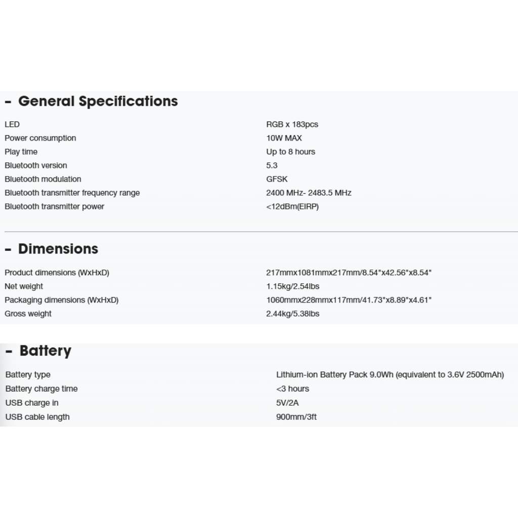 • 360-degree LED Lightshow stick. • Syncs Automatically with JBL PartyBox speakers (via Auracast or App). • Up to 8 Hours Battery Life. • IPX4 Splashproof. • Controlled via the JBL PartyBox App. • **Warranty: 1 Year General Warranty.**