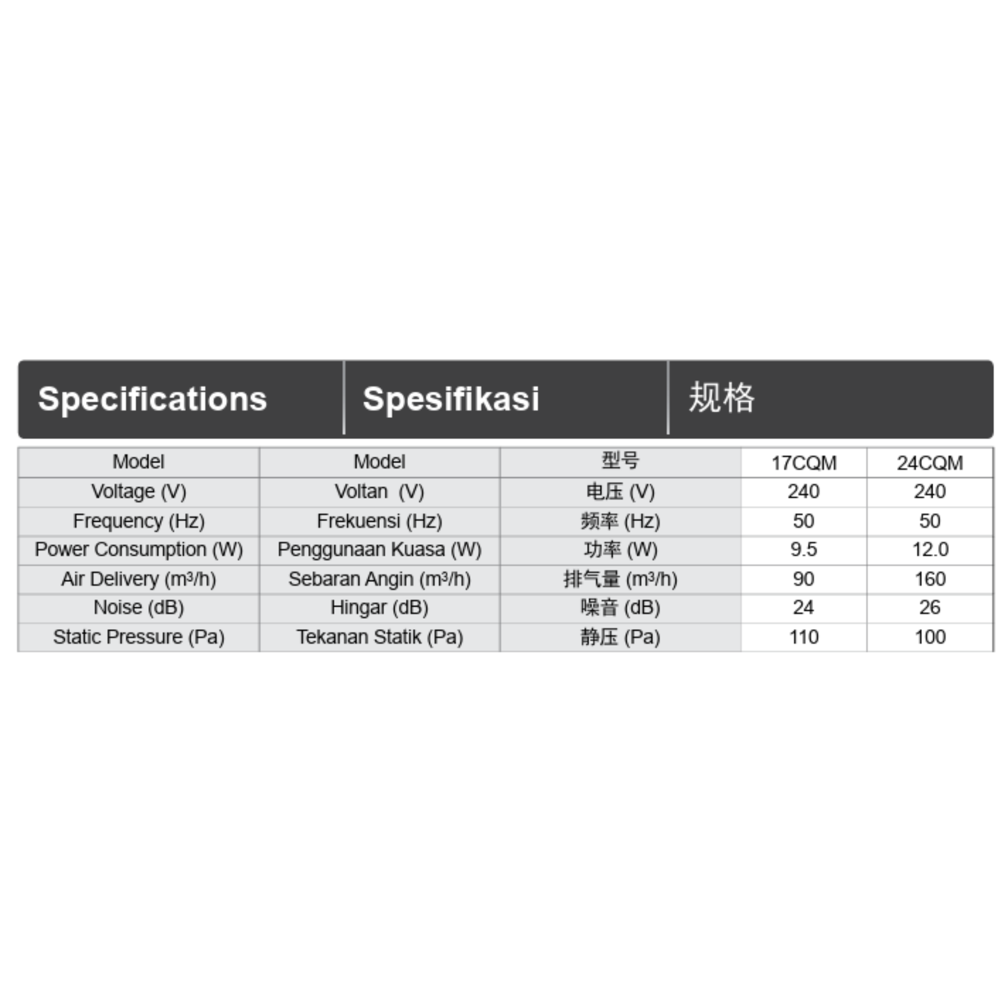 Buy KDK 240mm Ventilating Fan (24CQM) with durable motor. Features efficient Sirocco fan type. Original 1 Year Warranty & best price. Shop now.