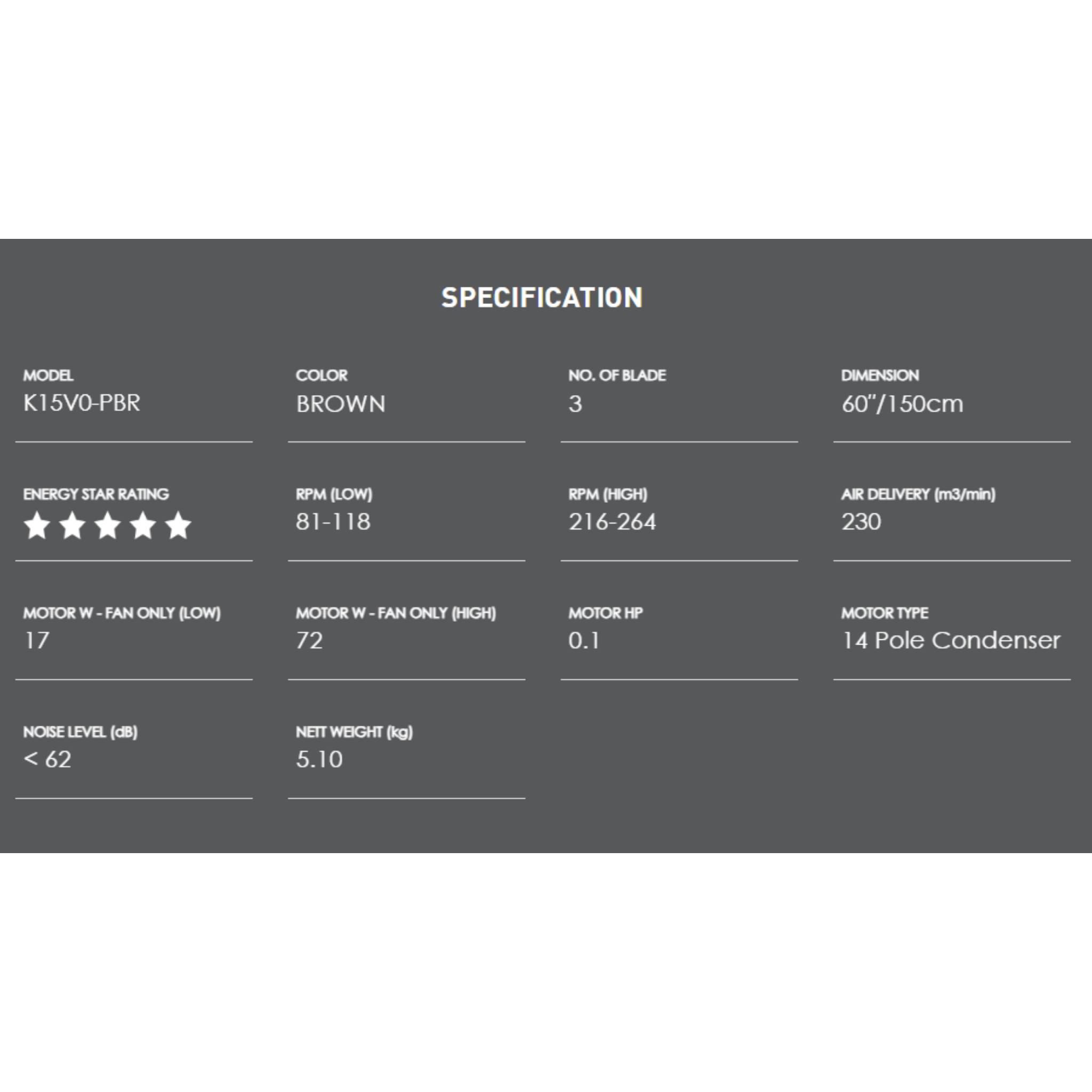 Buy KDK 60" Regulator Fan (K15V0-PBR) in brown. Features classic 3-blade performance. Original 1 Year Warranty. Shop now.
