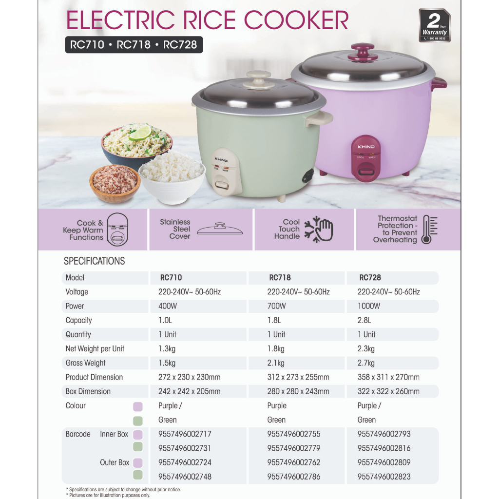 KHIND 1.0L ELECTRIC RICE COOKER (PURPLE) RC710 (PURPLE)