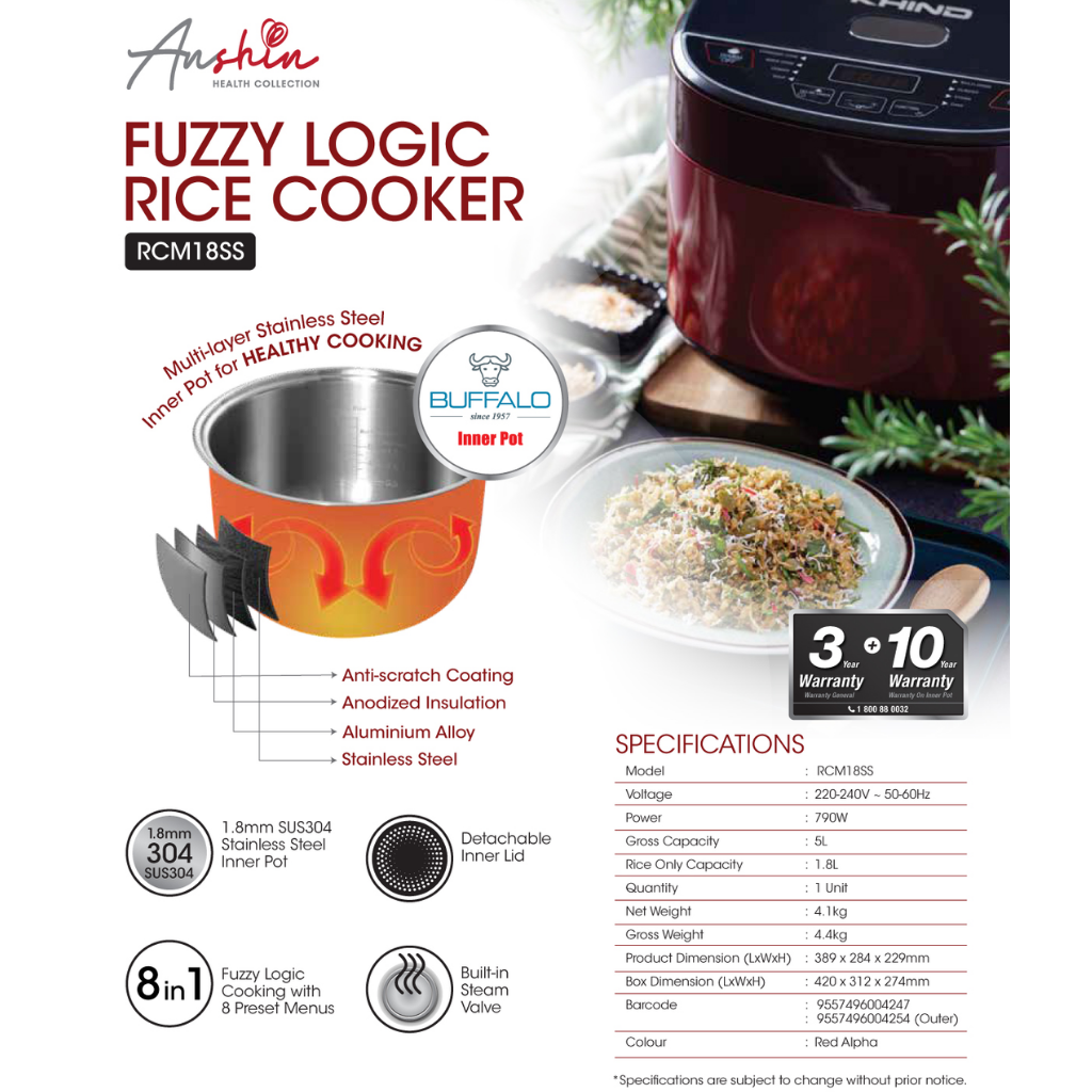 KHIND 1.8L ANSHIN FUZZY LOGIC RICE COOKER RCM18SS
