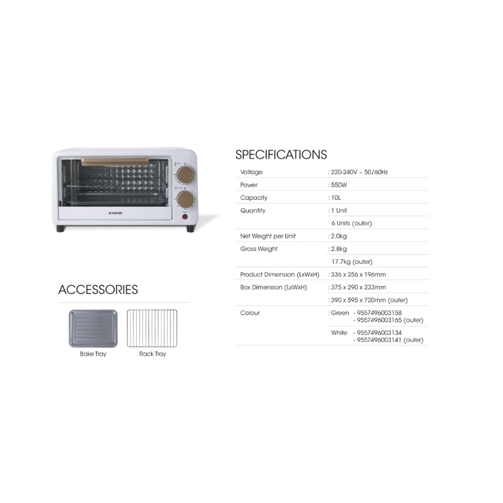 KHIND 10L ELECTRIC OVEN (WHITE) OT10(WHITE)