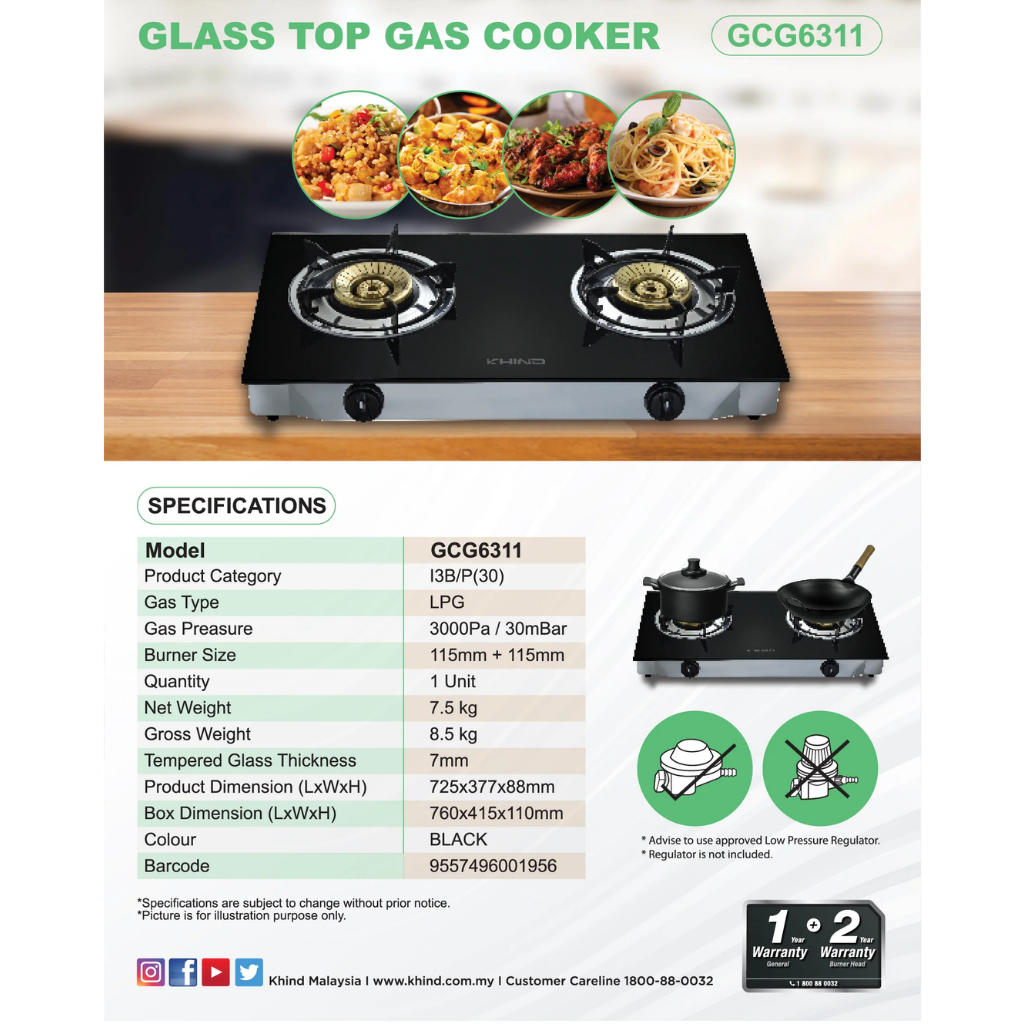 KHIND 115+115MM GL TOP GAS COOKER GCG6311