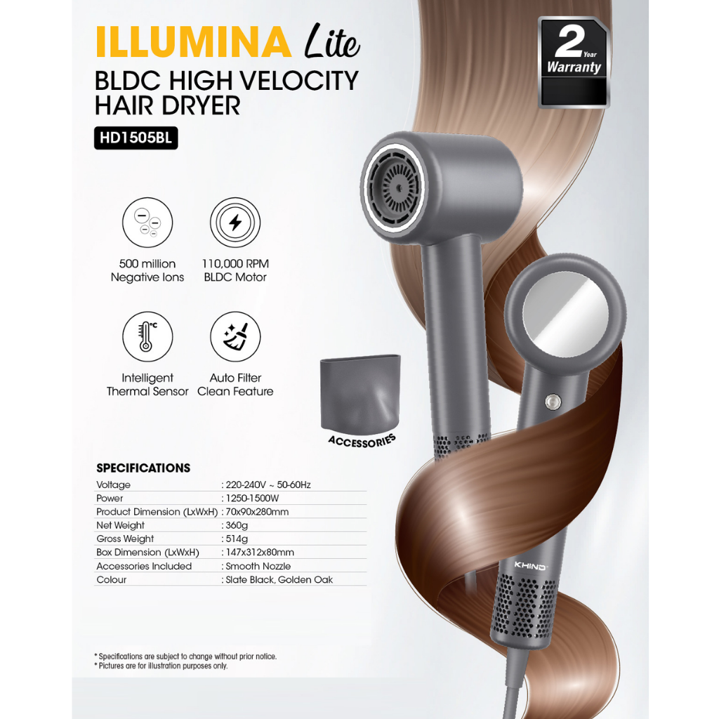 KHIND 1250W ILLUMINA LITE BL DC HIGH VELOCITY HAI HD1505BL