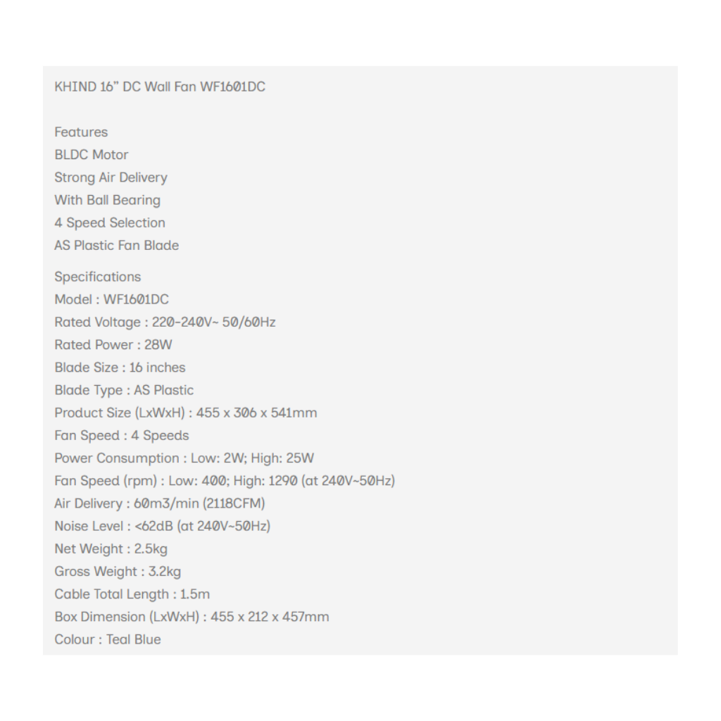 Features: • High Performance Motor • Built-in Safety Thermal Fuse • 3 Speed Push Button • Reinforced Safety Fan Guard • Oscillating Function • Warranty: 1 Year General, 3 Years Motor Warranty