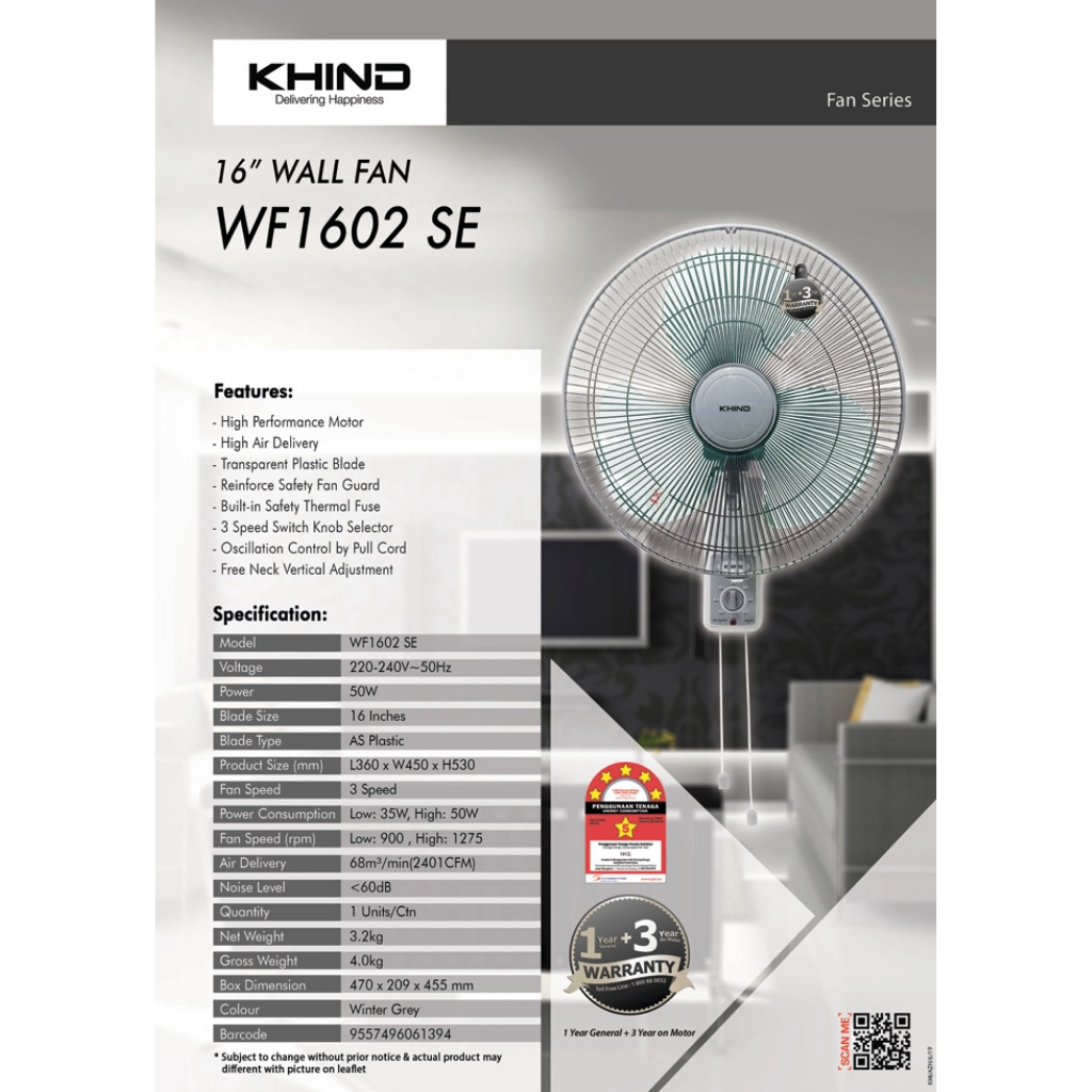 Features: • High Performance Motor • Built-in Safety Thermal Fuse • 3 Speed Push Button • Reinforced Safety Fan Guard • Oscillating Function • Warranty: 1 Year General, 3 Years Motor Warranty