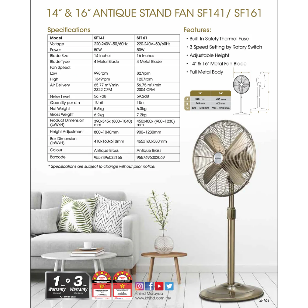 KHIND 16" ANTIQUE STAND FAN SF161MR